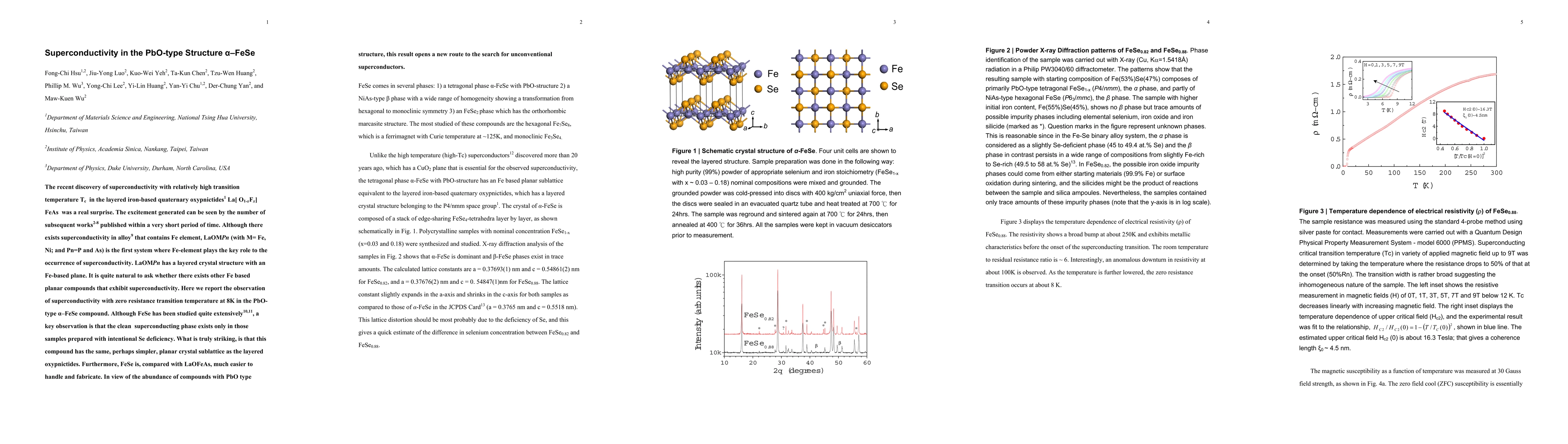 Researchers discovered superconductivity in alpha-FeSe, a PbO-type compound, with a transition temperature of 8K, offering a new route to searching for unconventional superconductors.