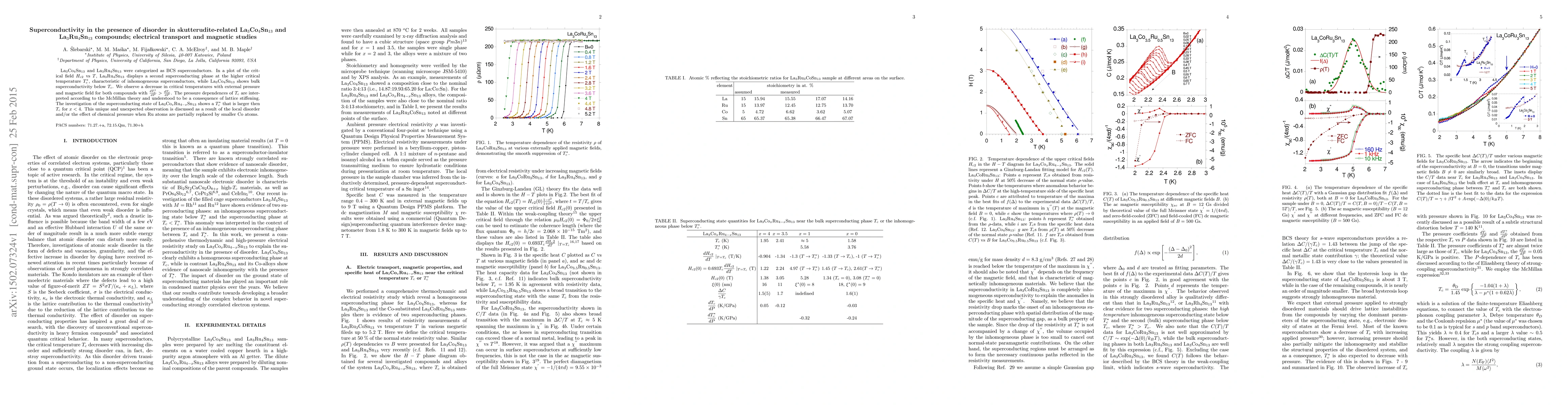 This study investigates superconductivity in disordered skutterudite compounds La$_3$Co$_4$Sn$_{13}$ and La$_3$Ru$_4$Sn$_{13}$, revealing La$_3$Ru$_4$Sn$_{13}$ exhibits a second superconducting phase at a higher critical temperature $T_c^{\star}$. Both compounds show a decrease in critical temperatures with external pressure and magnetic field, with $T_c^{\star}$ being more sensitive to pressure than $T_c$.