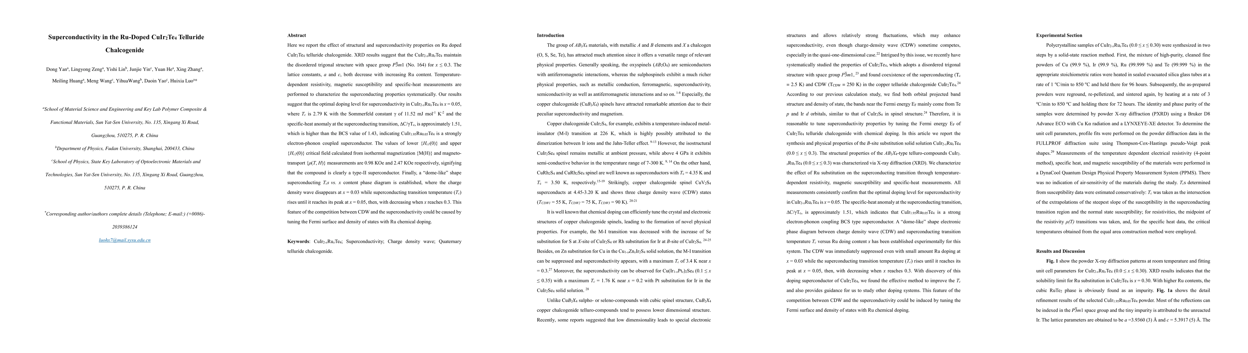 This study investigates the impact of Ru doping on the structural and superconducting properties of CuIr2Te4 telluride chalcogenide. The optimal doping level for superconductivity is found at x = 0.05, where Tc peaks at 2.79 K, indicating strong electron-phonon coupling and type-II superconductivity.