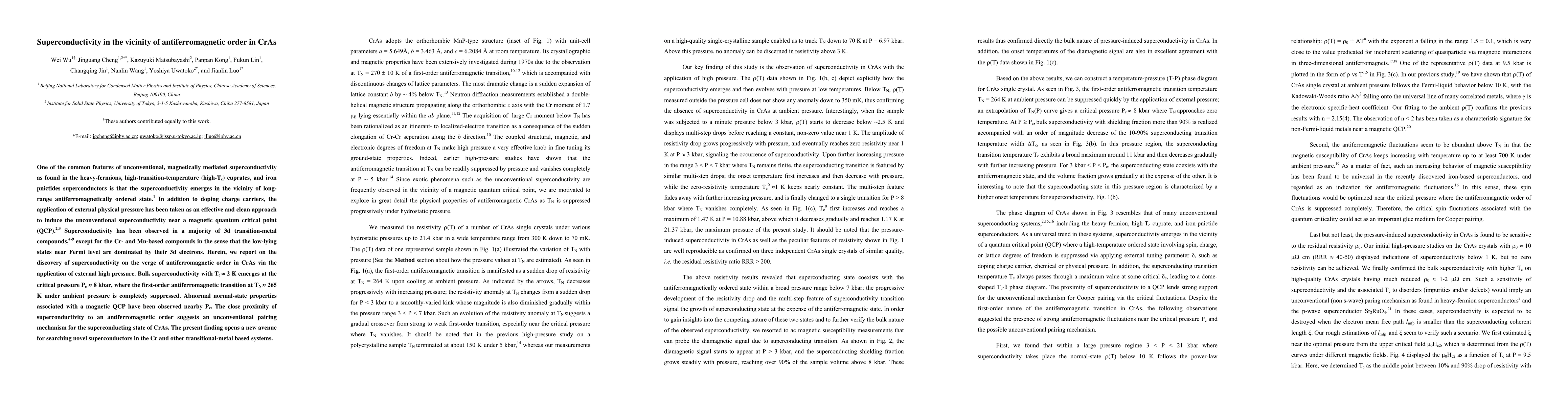 This paper reports on the discovery of superconductivity in CrAs under high pressure, emerging near the suppression of its antiferromagnetic order. The observed superconductivity at Tc ~ 2 K suggests an unconventional pairing mechanism, opening new avenues for finding novel superconductors in transition-metal based systems.