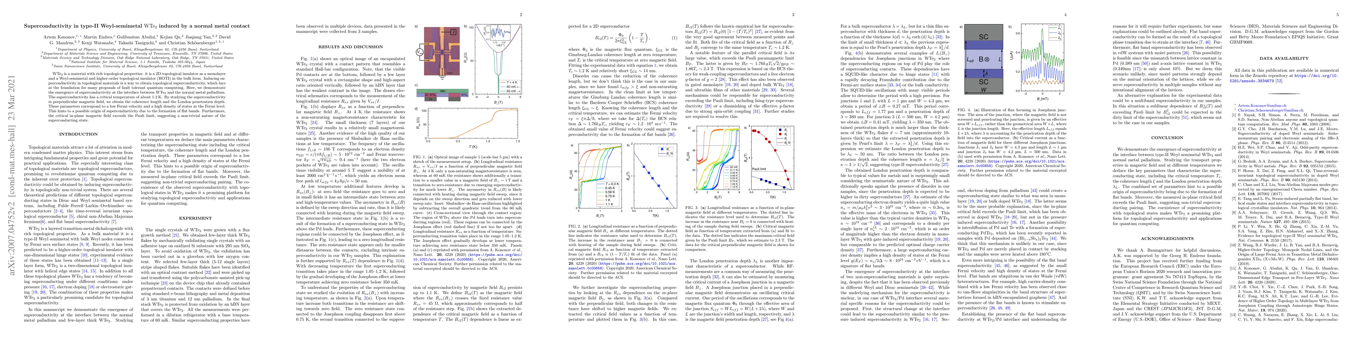 Researchers discovered superconductivity in WTe2 when it's paired with a normal metal contact, specifically palladium, at a temperature of about 1.2 K. This finding has implications for topological superconductivity and potentially fault-tolerant quantum computing.