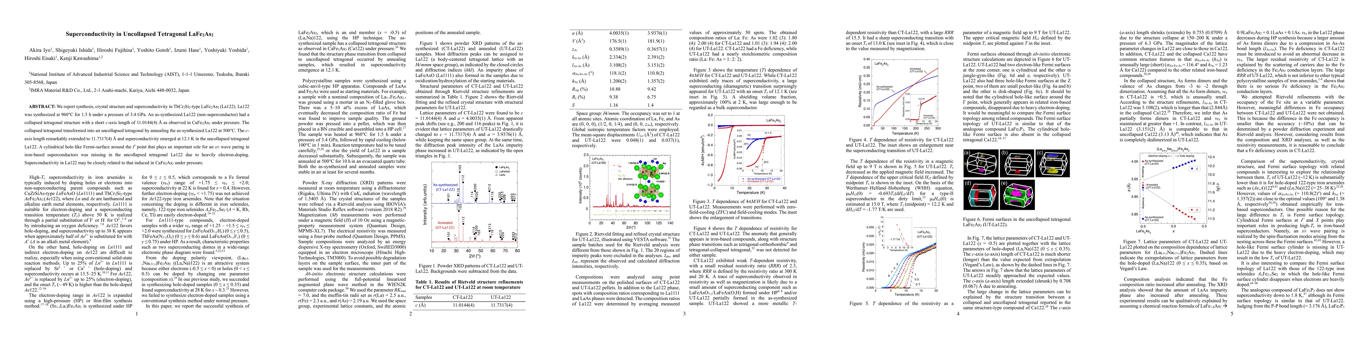 This paper reports the synthesis and transformation of tetragonal LaFe2As2 (La122) from a collapsed to an uncollapsed structure, leading to the emergence of superconductivity at 12.1 K. The structural change and electron doping likely influence the superconducting properties, suggesting a close relationship to pressure-induced superconductivity in CaFe2As2.