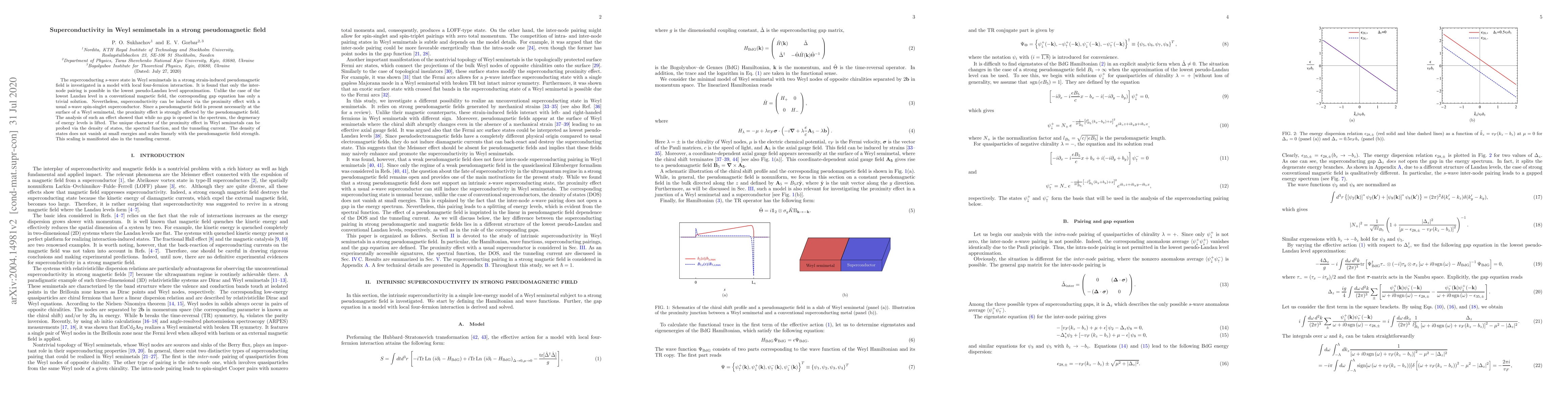 This paper investigates the superconductivity in Weyl semimetals under a strain-induced pseudomagnetic field, finding that inter-node pairing is possible. The study reveals that while no gap opens in the spectrum, the proximity effect induces a lifting of energy level degeneracy, which can be probed via density of states and tunneling current, showing a linear scaling with pseudomagnetic field strength.