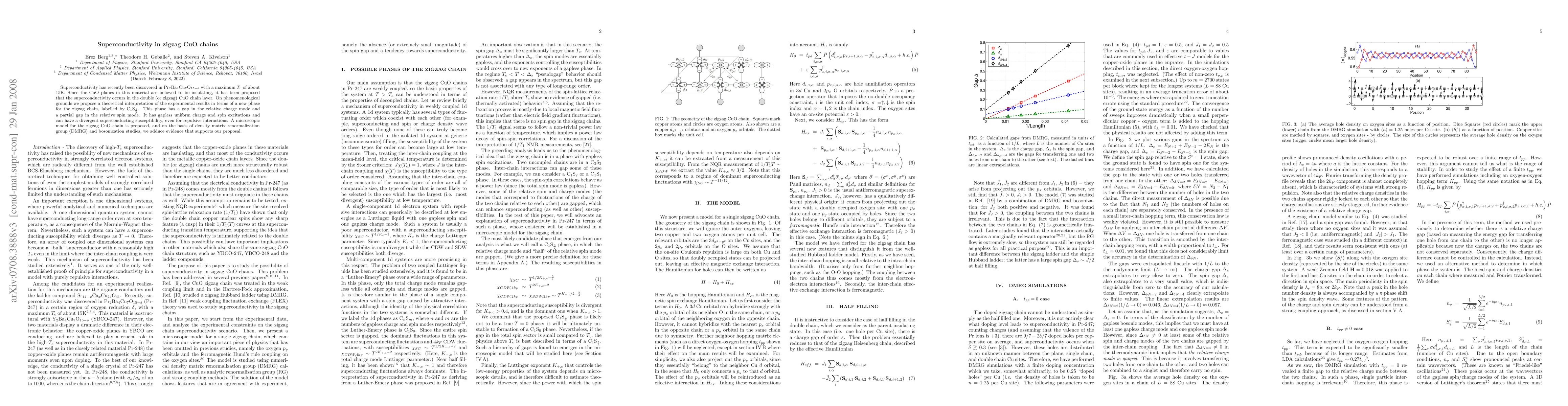 Superconductivity has recently been discovered in Pr$_{2}$Ba$_{4}$Cu$_{7}$O$_{15-\delta}$ with a maximum $T_c$ of about 15K. Since the CuO planes in this material are believed to be insulating, it has been proposed that the superconductivity occurs in the double (or zigzag) CuO chain layer. On phenomenological grounds, we propose a theoretical interpretation of the experimental results in terms of a new phase for the zigzag chain, labelled by C$_1$S$_{3/2}$. This phase has a gap for some of the relative spin and charge modes but no total spin gap, and can have a divergent superconducting susceptibility for repulsive interactions. A microscopic model for the zigzag CuO chain is proposed, and on the basis of density matrix renormalization group (DMRG) and bosonization studies of this model, we adduce evidence that supports our proposal.