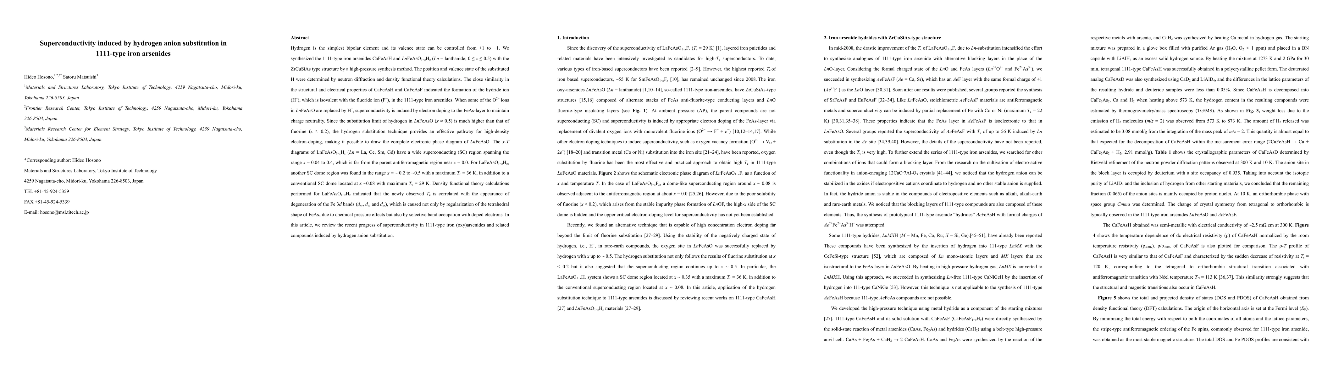 This paper investigates superconductivity induced by hydrogen anion substitution in 1111-type iron arsenides, demonstrating that hydrogen substitution effectively induces electron doping and enhances superconducting properties. The study finds a wide superconducting region and multiple superconducting domes, suggesting a complex relationship between hydrogen doping and electronic band structure.