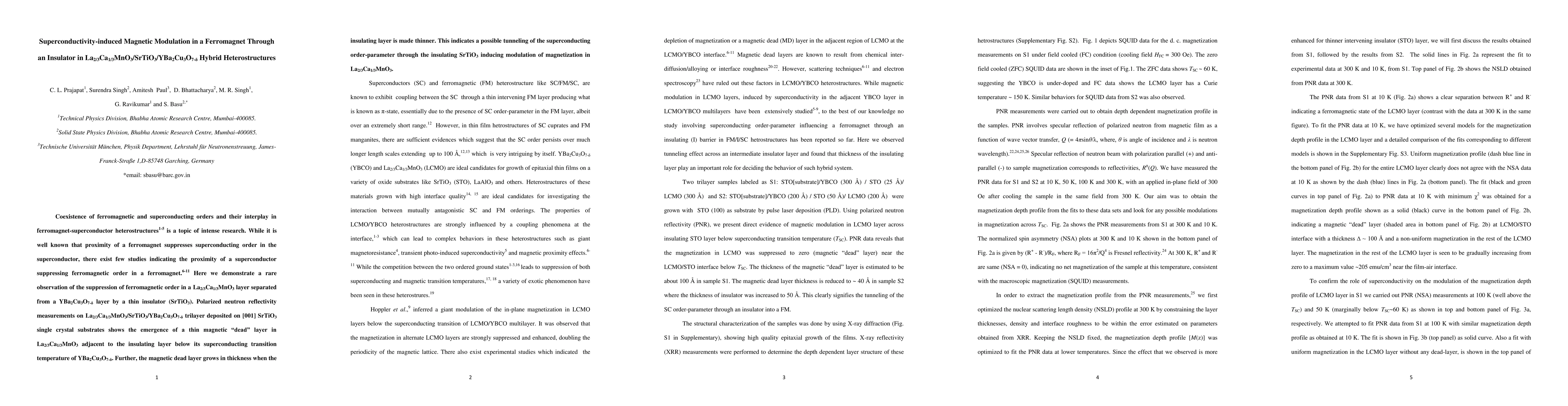 Researchers observed the suppression of ferromagnetic order in a LaCaMnO3 layer due to proximity with a superconductor through an insulator, suggesting possible tunneling of the superconducting order-parameter.