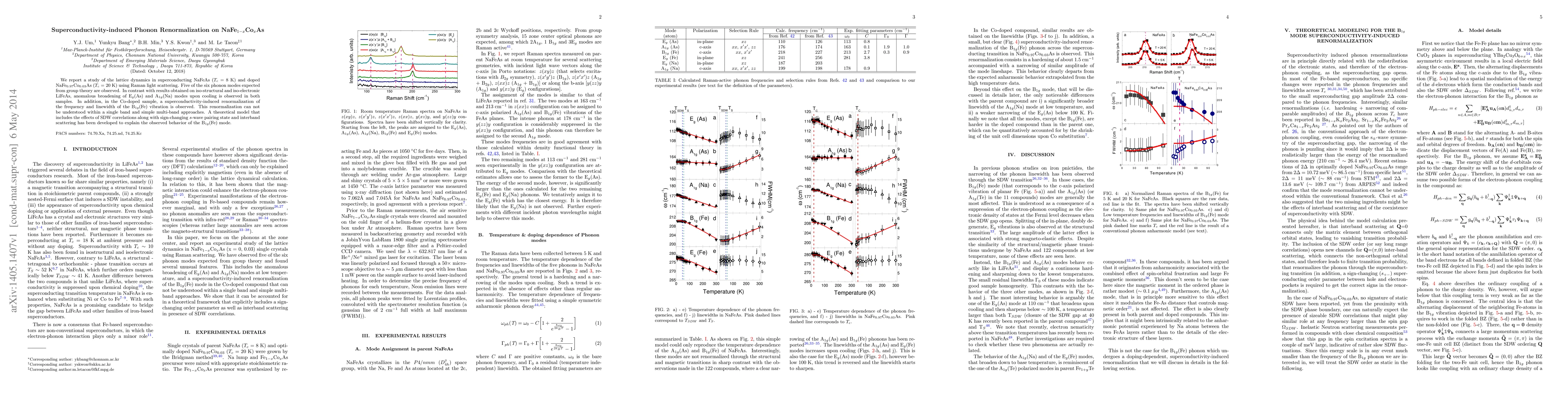 We report a study of the lattice dynamics in superconducting NaFeAs (Tc = 8 K) and doped NaFe0.97Co0.03As (Tc = 20 K) using Raman light scattering. Five of the six phonon modes expected from group theory are observed. In contrast with results obtained on iso-structural and iso-electronic LiFeAs, anomalous broadening of Eg(As) and A1g(Na) modes upon cooling is observed in both samples. In addition, in the Co-doped sample, a superconductivity-induced renormalization of the frequency and linewidth of the B1g(Fe) vibration is observed. This renormalization can not be understood within a single band and simple multi-band approaches. A theoretical model that includes the effects of SDW correlations along with sign-changing s-wave pairing state and interband scattering has been developed to explain the observed behavior of the B1g(Fe) mode.
