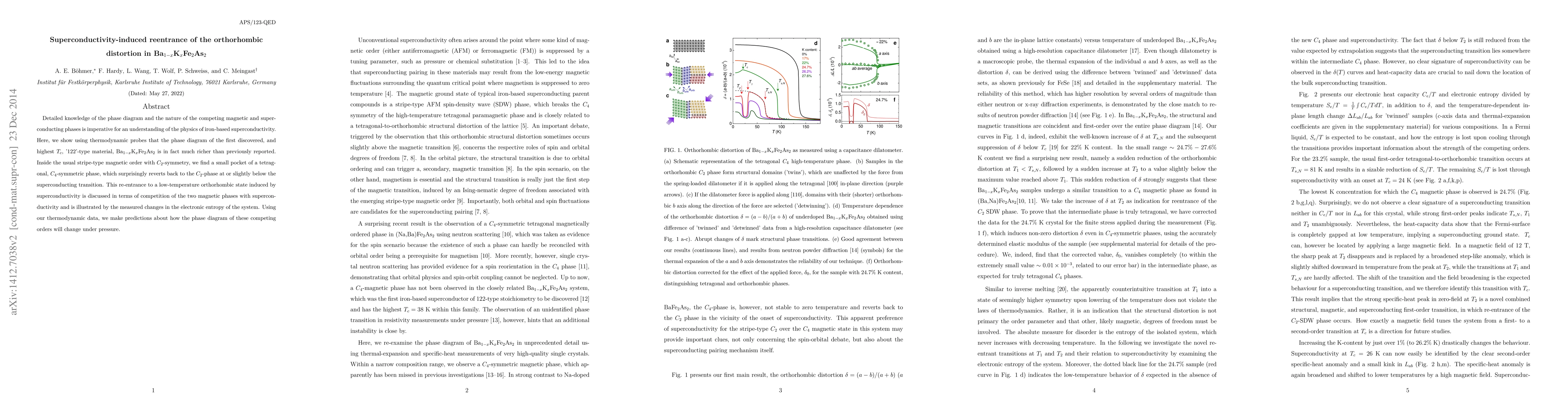 This study reveals that the 122-type material Ba1-xKxFe2As2 exhibits a reentrant orthorhombic distortion induced by superconductivity, challenging previous understandings of its phase diagram. The findings suggest a complex interplay between magnetic and superconducting phases, with implications for the broader physics of iron-based superconductors.