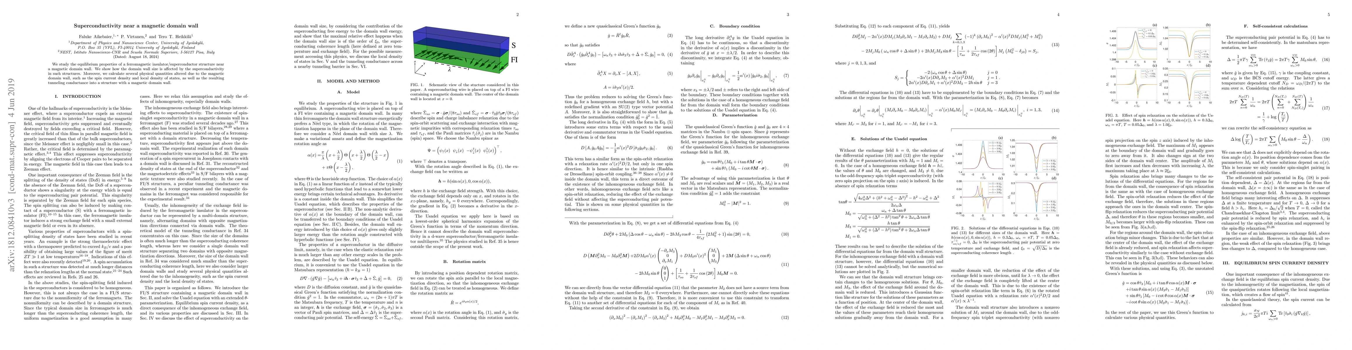 This research is significant as it provides insights into the interplay between superconductivity and ferromagnetism, particularly near magnetic domain walls, which can have implications for spintronic devices and the understanding of unconventional superconductivity.