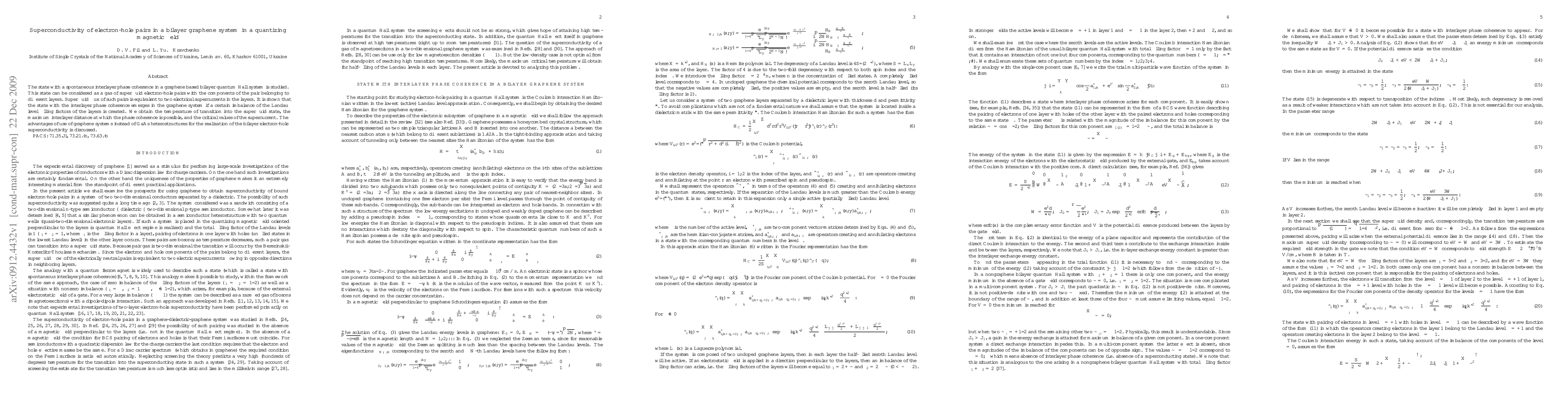 This paper investigates the superconductivity of electron-hole pairs in a bilayer graphene system under a quantizing magnetic field, revealing the emergence of a superfluid state with interlayer phase coherence. The study highlights the advantages of graphene over GaAs heterostructures for achieving bilayer electron-hole superconductivity.