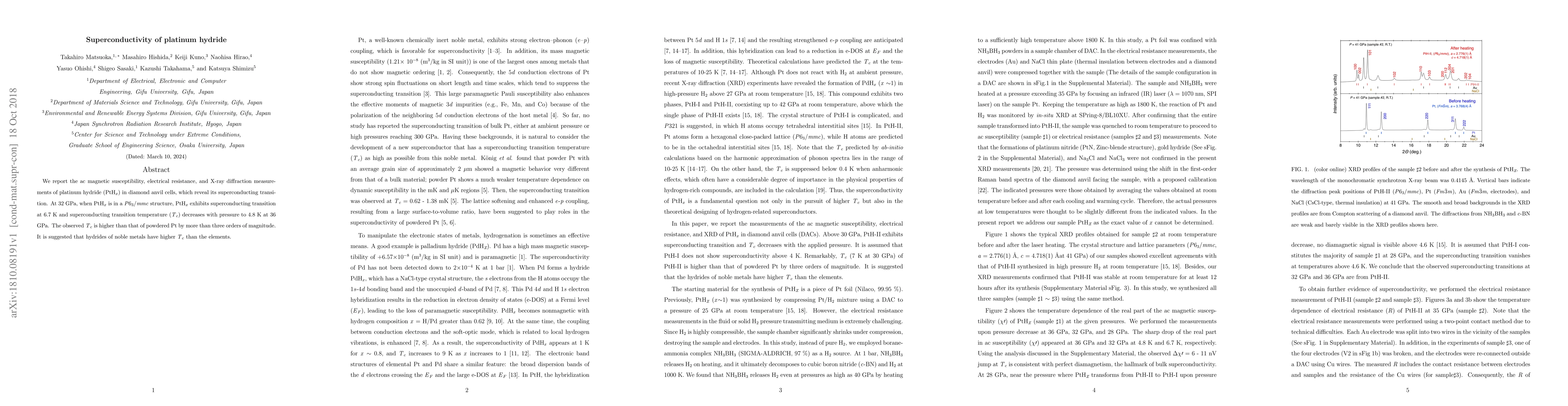 This study reveals that platinum hydride (PtHx) exhibits superconductivity at 6.7 K under 32 GPa pressure, with the transition temperature decreasing to 4.8 K at 36 GPa, showing a significantly higher Tc than elemental platinum.