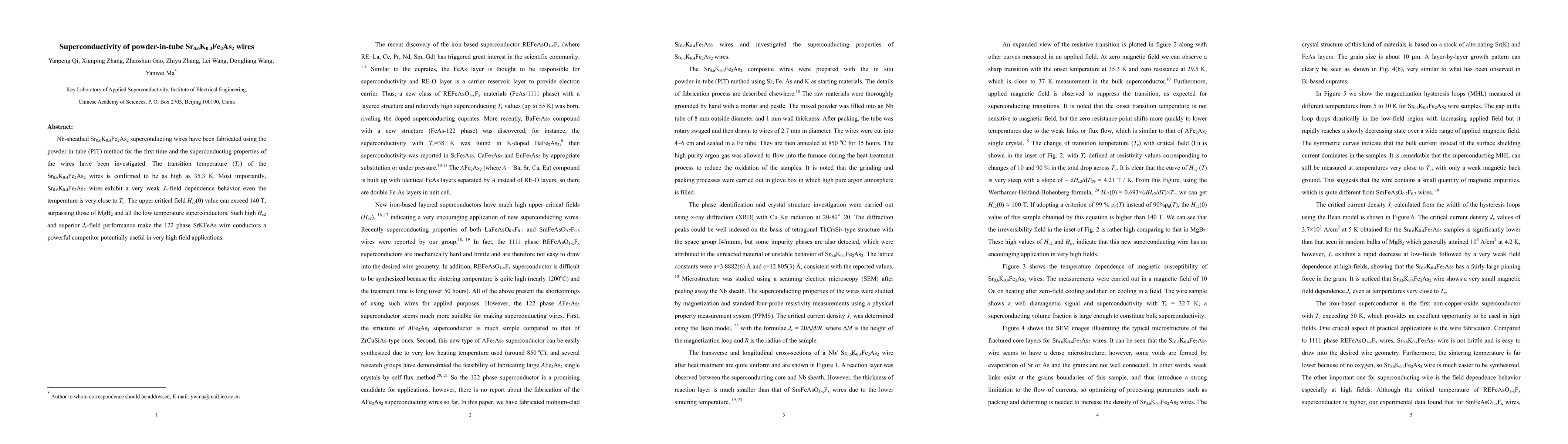 Nb-sheathed Sr0.6K0.4Fe2As2 superconducting wires have been fabricated using the powder-in-tube (PIT) method for the first time and the superconducting properties of the wires have been investigated. The transition temperature (Tc) of the Sr0.6K0.4Fe2As2 wires is confirmed to be as high as 35.3 K. Most importantly, Sr0.6K0.4Fe2As2 wires exhibit a very weak Jc-field dependence behavior even the temperature is very close to Tc. The upper critical field Hc2(0) value can exceed 140 T, surpassing those of MgB2 and all the low temperature superconductors. Such high Hc2 and superior Jc-field performance make the 122 phase SrKFeAs wire conductors a powerful competitor potentially useful in very high field applications.