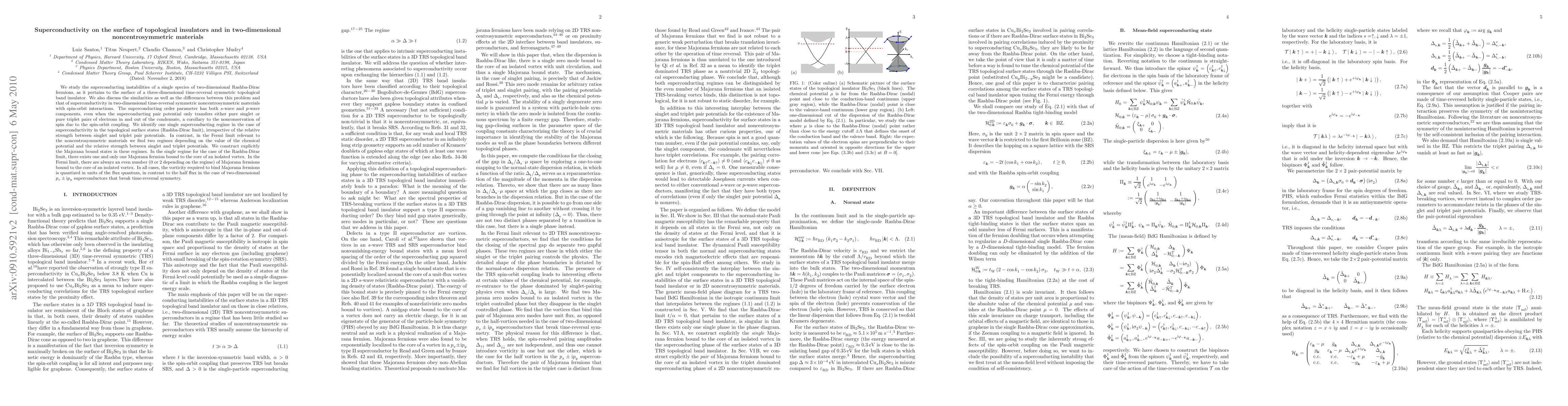 This paper investigates the superconducting properties of two-dimensional Rashba-Dirac fermions on topological insulators and compares them to noncentrosymmetric materials. It finds a single superconducting regime for topological insulators, while noncentrosymmetric materials exhibit two regimes, leading to different numbers of Majorana fermions bound to vortices.