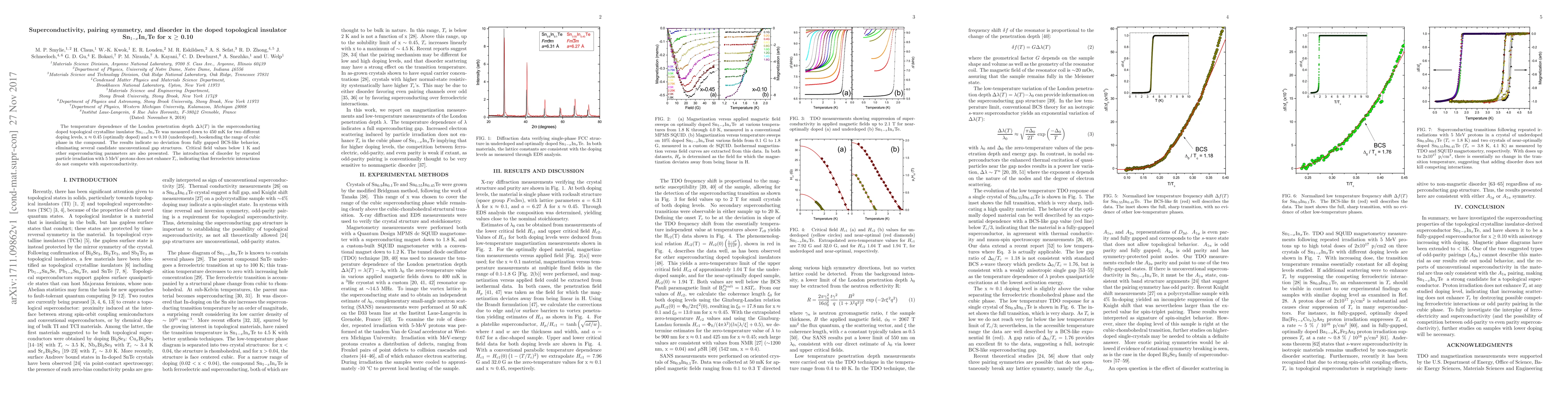 Researchers investigated superconductivity in Sn1-xInxTe and found no deviation from BCS-like behavior, ruling out several unconventional gap structures. Disorder introduction did not enhance critical field values or superconducting temperature.