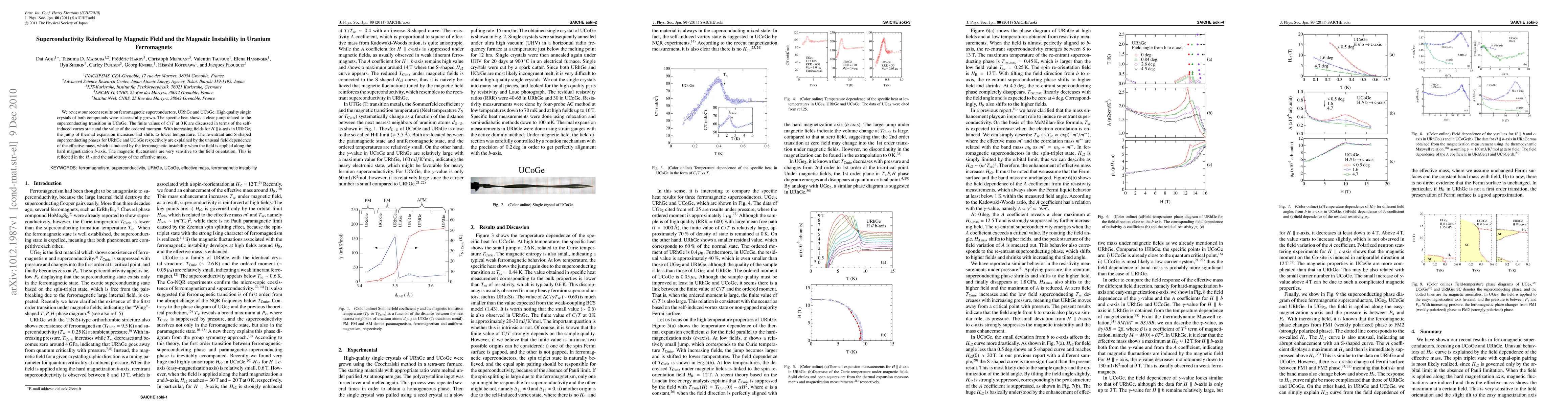 This paper reviews recent findings on ferromagnetic superconductors URhGe and UCoGe, highlighting the impact of magnetic fields on their superconducting properties. The study reveals complex magnetic instabilities and an unusual field dependence of effective mass, leading to re-entrant and S-shaped superconducting phases, respectively.