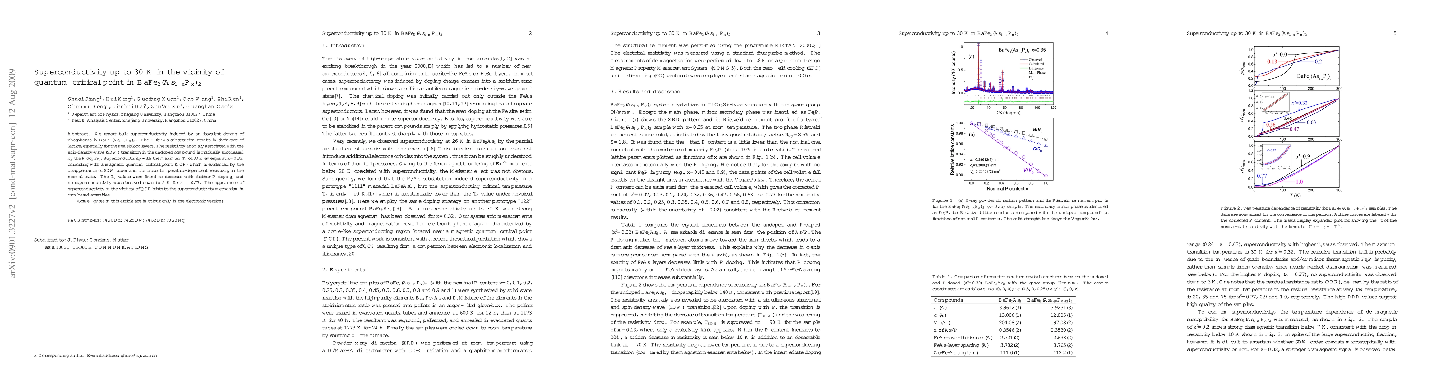 We report bulk superconductivity induced by an isovalent doping of phosphorus in BaFe$_{2}$(As$_{1-x}$P$_{x}$)$_{2}$. The P-for-As substitution results in shrinkage of lattice, especially for the FeAs block layers. The resistivity anomaly associated with the spin-density-wave (SDW) transition in the undoped compound is gradually suppressed by the P doping. Superconductivity with the maximum $T_c$ of 30 K emerges at $x$=0.32, coinciding with a magnetic quantum critical point (QCP) which is evidenced by the disappearance of SDW order and the linear temperature-dependent resistivity in the normal state. The $T_c$ values were found to decrease with further P doping, and no superconductivity was observed down to 2 K for $x\geq$ 0.77. The appearance of superconductivity in the vicinity of QCP hints to the superconductivity mechanism in iron-based arsenides.