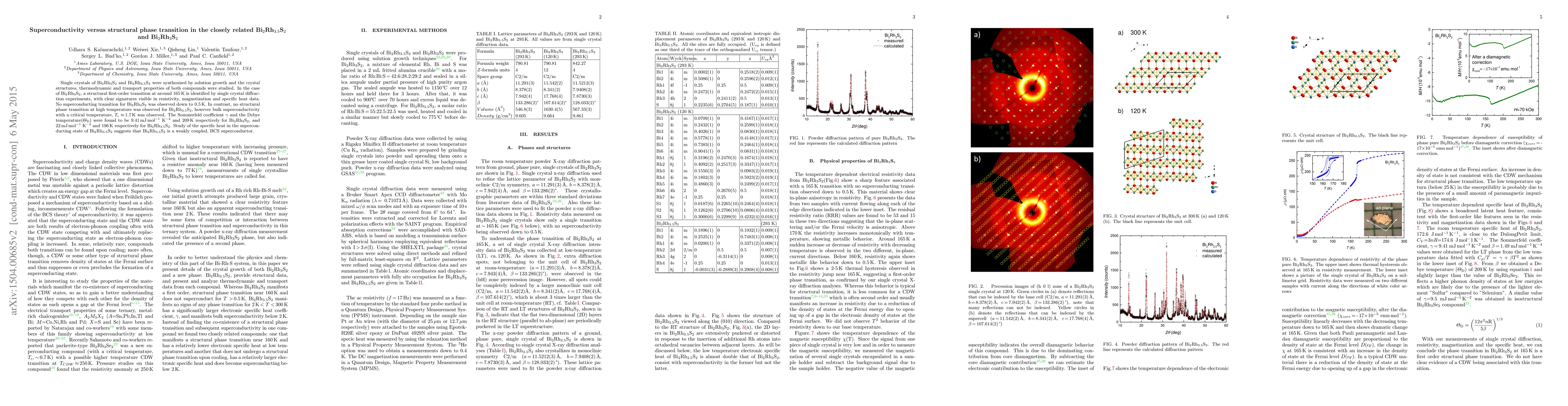 Single crystals of Bi$_{2} $Rh$ _{3}$S$ _{2}$ and Bi$_{2} $Rh$ _{3.5}$S$ _{2}$ were synthesized by solution growth and the crystal structures, thermodynamic and transport properties of both compounds were studied. In the case of Bi$_{2} $Rh$ _{3}$S$ _{2}$, a structural first-order transition at around 165 K is identified by single crystal diffraction experiments, with clear signatures visible in resistivity, magnetization and specific heat data. No superconducting transition for Bi$_{2} $Rh$ _{3}$S$ _{2}$ was observed down to 0.5 K. In contrast, no structural phase transition at high temperature was observed for Bi$_{2} $Rh$ _{3.5}$S$ _{2}$, however bulk superconductivity with a critical temperature, $T_{c}\approx$ 1.7 K was observed. The Sommerfeld coefficient $\gamma$\ and the Debye temperature($\varTheta_{\textrm{D}}$) were found to be 9.4 mJ mol$^{-1}$ K$^{-2}$ and 209 K respectively for Bi$_{2} $Rh$ _{3}$S$ _{2}$, and 22 mJ mol$^{-1}$ K$^{-2}$ and 196 K respectively for Bi$_{2} $Rh$ _{3.5}$S$ _{2}$. Study of the specific heat in the superconducting state of Bi$_{2} $Rh$ _{3.5}$S$ _{2}$ suggests that Bi$_{2} $Rh$ _{3.5}$S$ _{2}$ is a weakly coupled, BCS superconductor.