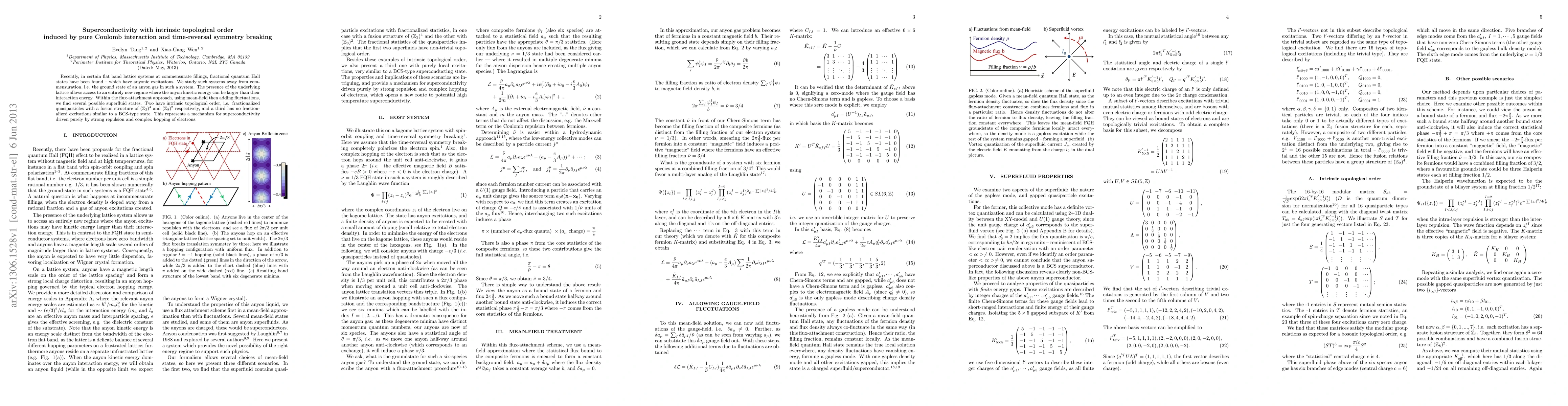Recently, in certain flat band lattice systems at commensurate fillings, fractional quantum Hall states have been found -- which have anyonic excitations. We study such systems away from commensuration, i.e. the ground state of an anyon gas in such a system. The presence of the underlying lattice allows access to an entirely new regime where the anyon kinetic energy can be larger than their interaction energy. Within the flux-attachment approach, using mean-field then adding fluctuations, we find several possible superfluid states. Two have intrinsic topological order, i.e. fractionalized quasiparticles with a fusion structure of (Z_2)^4 and (Z_8)^2 respectively, and a third has no fractionalized excitations similar to a BCS-type state. This represents a mechanism for superconductivity driven purely by strong repulsion and complex hopping of electrons.