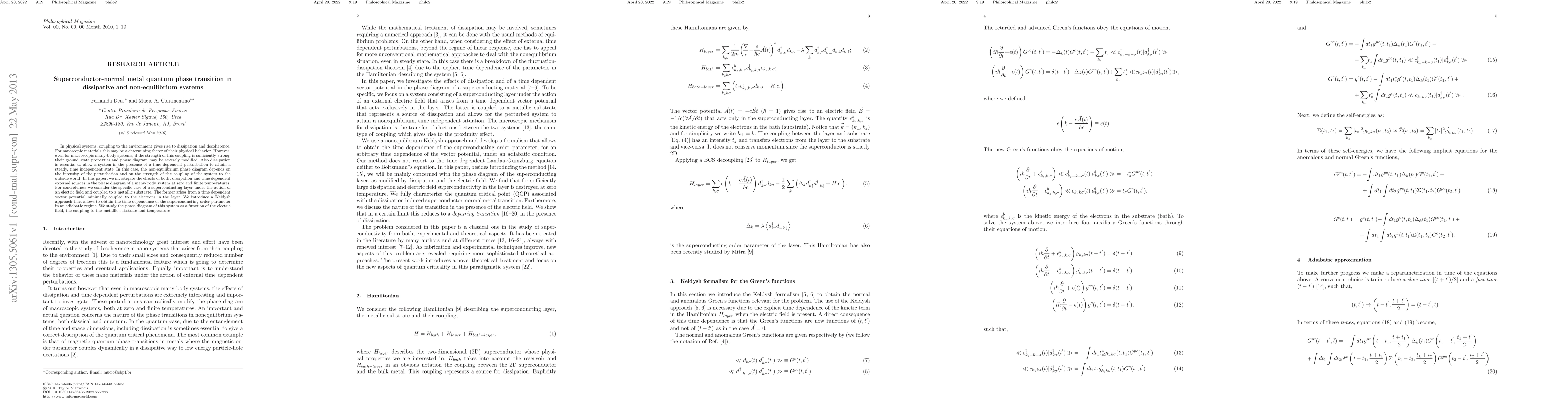 In physical systems, coupling to the environment gives rise to dissipation and decoherence. For nanoscopic materials this may be a determining factor of their physical behavior. However, even for macroscopic many-body systems, if the strength of this coupling is sufficiently strong, their ground state properties and phase diagram may be severely modified. Also dissipation is essential to allow a system in the presence of a time dependent perturbation to attain a steady, time independent state. In this case, the non-equilibrium phase diagram depends on the intensity of the perturbation and on the strength of the coupling of the system to the outside world. In this paper, we investigate the effects of both, dissipation and time dependent external sources in the phase diagram of a many-body system at zero and finite temperatures. For concreteness we consider the specific case of a superconducting layer under the action of an electric field and coupled to a metallic substrate. The former arises from a time dependent vector potential minimally coupled to the electrons in the layer. We introduce a Keldysh approach that allows to obtain the time dependence of the superconducting order parameter in an adiabatic regime. We study the phase diagram of this system as a function of the electric field, the coupling to the metallic substrate and temperature.