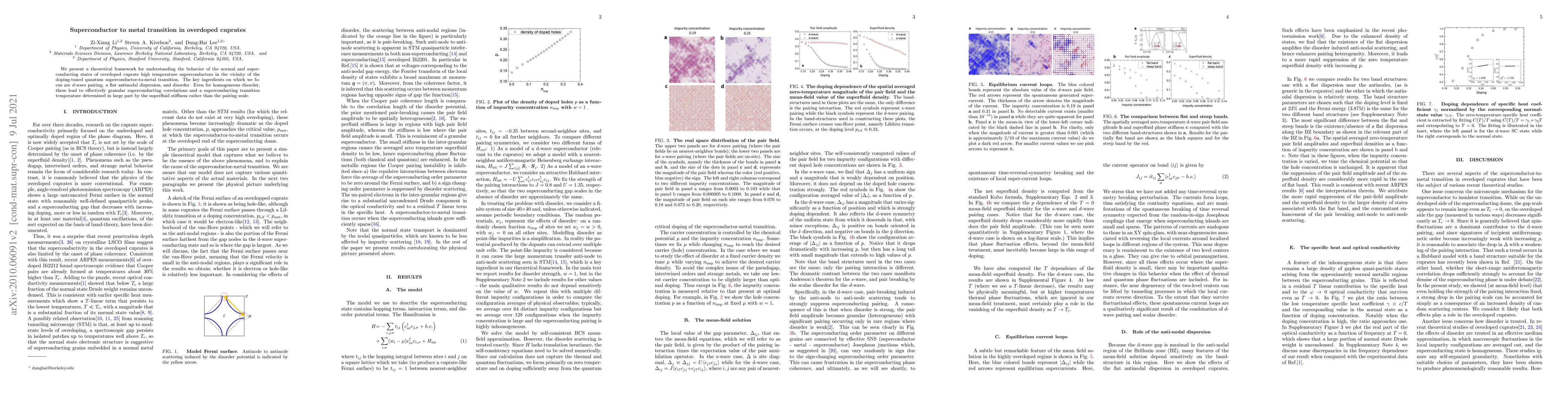 Theoretical framework describes how overdoped cuprates transition from superconductors to metals, highlighting the role of d-wave pairing, flat antinodal dispersion, and disorder in determining the superconducting transition temperature.