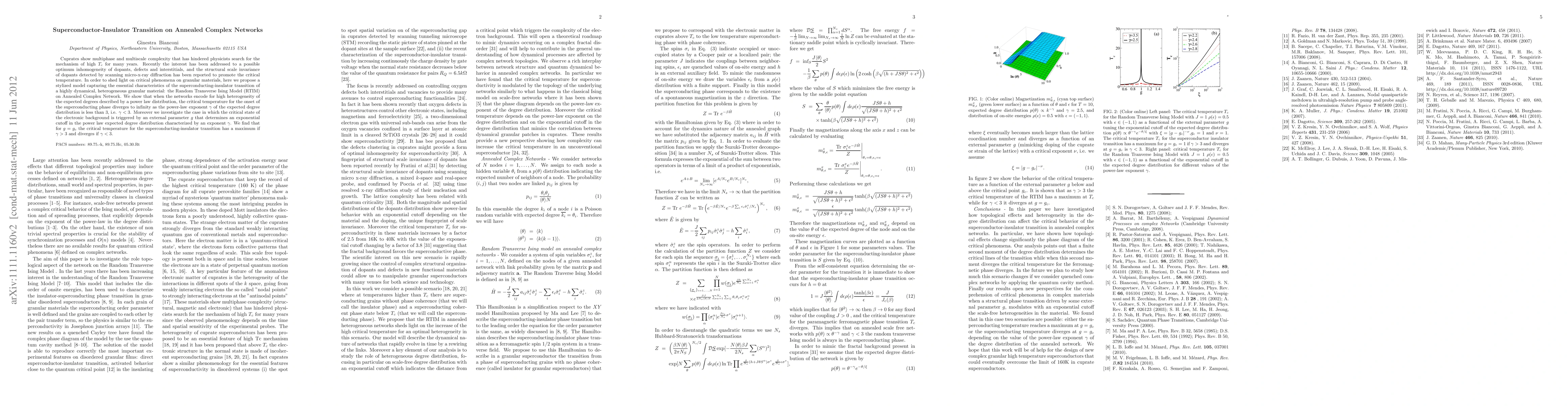 Cuprates show multiphase complexity that has hindered physicists search for the mechanism of high T_c for many years. A fingerprint of electronic scale invariance has been reported recently by Fratini et al. by detecting the structural scale invariance of dopants using scanning micro x-ray diffraction. In order to shed light on critical phenomena on these materials, here we propose a stylized model capturing the essential characteristics of the superconducting-isulator transition of a highly dynamical, heterogenous granular material: the Disordered Quantum Tranverse Ising Model (DQTIM) on Annealed Complex Network. We show that when the networks encode for high heterogeneity of the expected degrees described by a power law distribution, the critical temperature for the onset of the supercoducting phase diverges to infinity as the power-law exponent \gamma of the expected degree distribution is less than 3, i.e. \gamma<3. Moreover we investigate the case in which the critical state of the electronic background is triggered by an external parameter g that determines an exponential cutoff in the power law expected degree distribution characterized by an exponent \gamma. We find that for g=g_c the critical temperature for the superconduting-insulator transition has a maximum is \gamma>3 and diverges if \gamma<3.