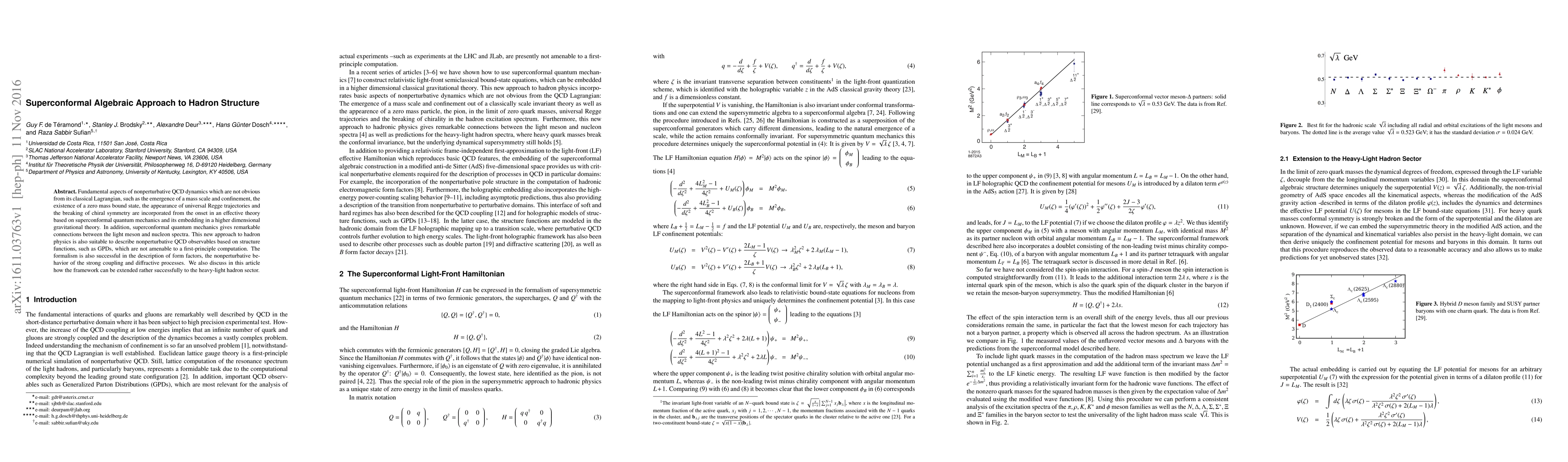 Fundamental aspects of nonperturbative QCD dynamics which are not obvious from its classical Lagrangian, such as the emergence of a mass scale and confinement, the existence of a zero mass bound state, the appearance of universal Regge trajectories and the breaking of chiral symmetry are incorporated from the onset in an effective theory based on superconformal quantum mechanics and its embedding in a higher dimensional gravitational theory. In addition, superconformal quantum mechanics gives remarkable connections between the light meson and nucleon spectra. This new approach to hadron physics is also suitable to describe nonperturbative QCD observables based on structure functions, such as GPDs, which are not amenable to a first-principle computation. The formalism is also successful in the description of form factors, the nonperturbative behavior of the strong coupling and diffractive processes. We also discuss in this article how the framework can be extended rather successfully to the heavy-light hadron sector.