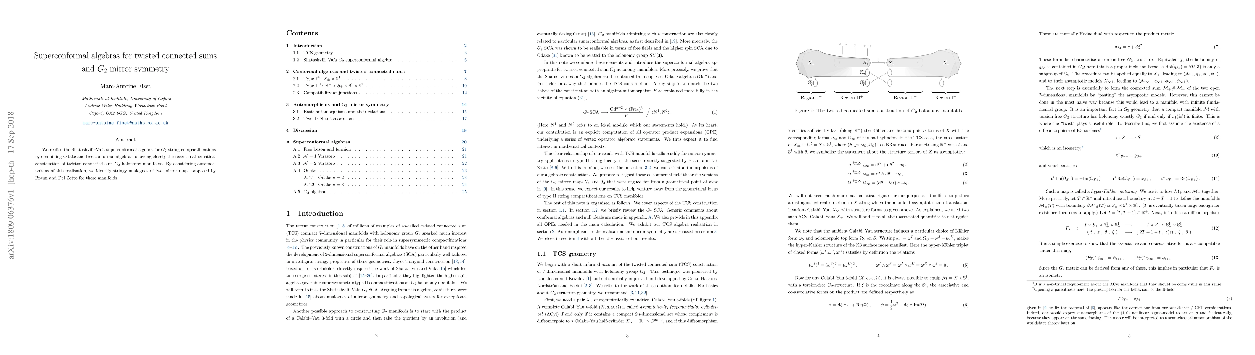 This paper constructs the Shatashvili-Vafa superconformal algebra for $G_2$ string compactifications using Odake and free conformal algebras, mirroring the mathematical construction of twisted connected sum $G_2$ holonomy manifolds. It identifies stringy analogues of mirror maps for these manifolds.