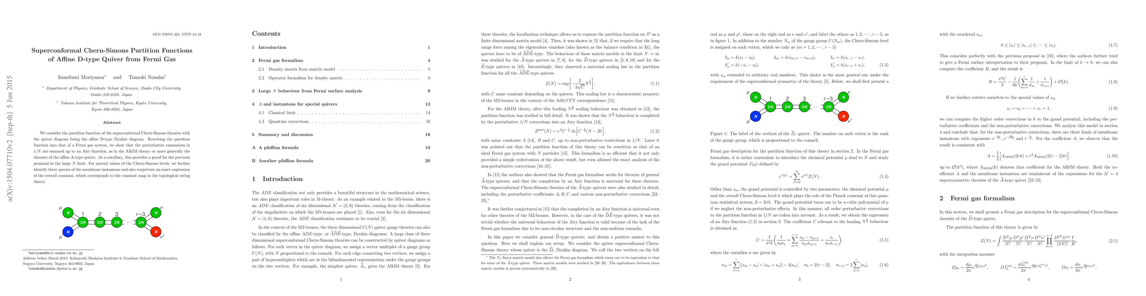This paper studies the partition function of superconformal Chern-Simons theories with an affine D-type quiver, demonstrating that its perturbative expansion in 1/N can be summed to an Airy function, analogous to the ABJM theory. It identifies three types of membrane instantons and proposes an exact expression for a constant related to topological string theory.