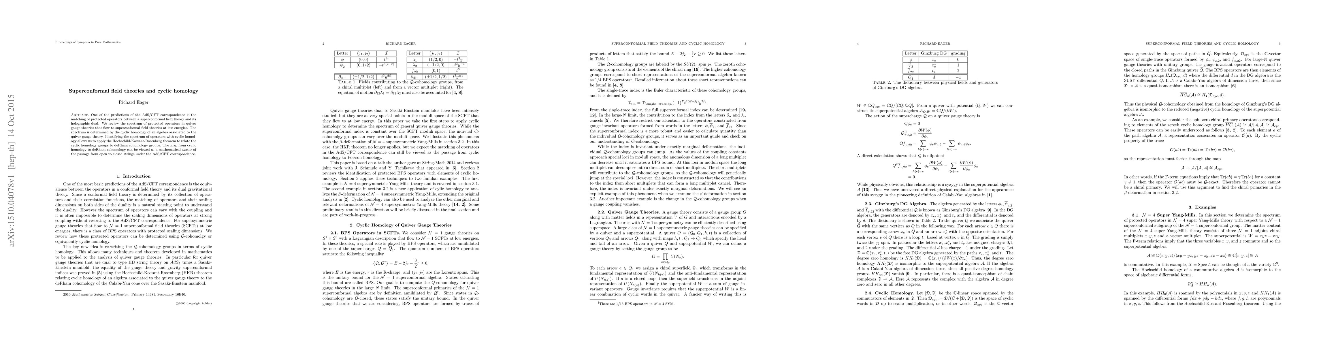 One of the predictions of the AdS/CFT correspondence is the matching of protected operators between a superconformal field theory and its holographic dual. We review the spectrum of protected operators in quiver gauge theories that flow to superconformal field theories at low energies. The spectrum is determined by the cyclic homology of an algebra associated to the quiver gauge theory. Identifying the spectrum of operators with cyclic homology allows us to apply the Hochschild-Kostant-Rosenberg theorem to relate the cyclic homology groups to deRham cohomology groups. The map from cyclic homology to deRham cohomology can be viewed as a mathematical avatar of the passage from open to closed strings under the AdS/CFT correspondence.