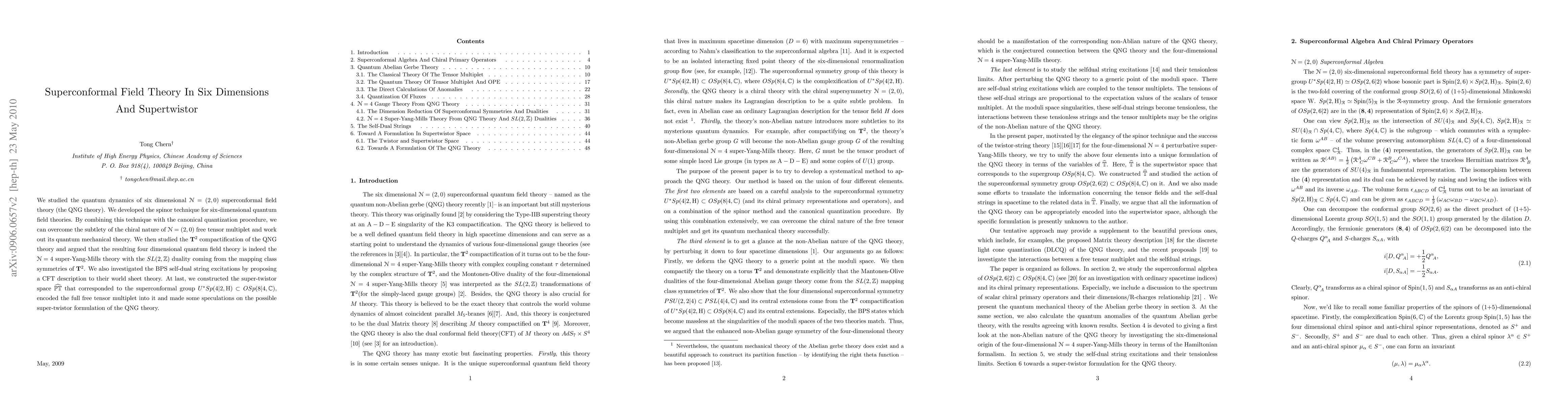 This research explores the quantum dynamics of six-dimensional $\mathcal{N}=(2, 0)$ superconformal field theory (QNG theory) using a novel spinor technique. The study reveals that compactifying the QNG theory on $\mathbf{T}^2$ leads to $\mathcal{N}=4$ super-Yang-Mills theory in four dimensions, with $SL(2, \mathbf{Z})$ duality arising from $\mathbf{T}^2$ symmetries.