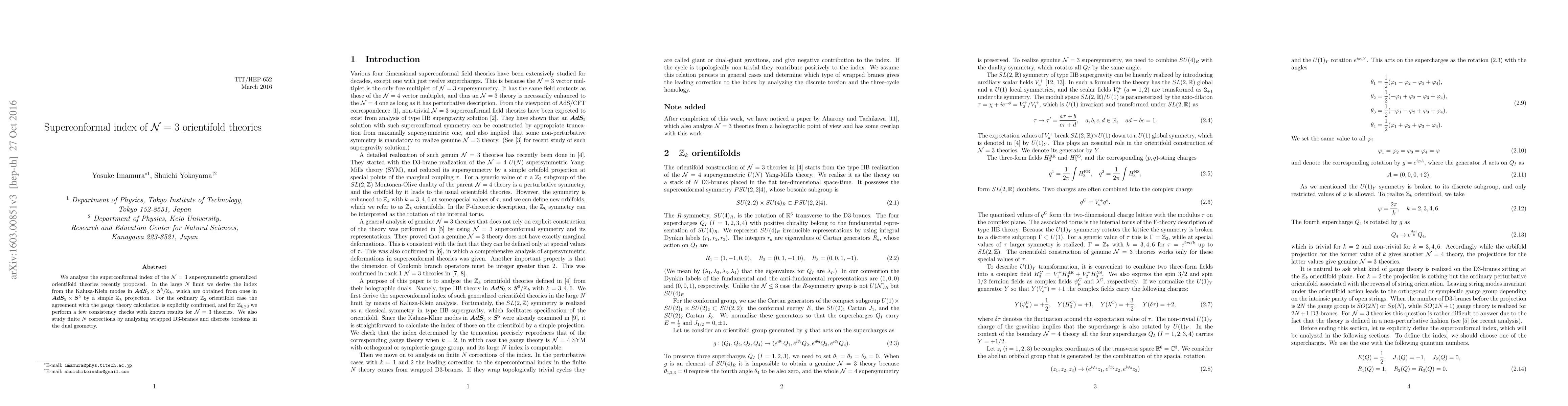 The paper derives the superconformal index of N=3 supersymmetric Z_k orientifold theories from AdS_5 x S^5/Z_k Kaluza-Klein modes in the large N limit. It confirms the Z_2 orientifold agreement with gauge theory calculations and checks consistency for Z_k (k > 2). Finite N corrections are studied via wrapped D3-branes and discrete torsions in the dual geometry.