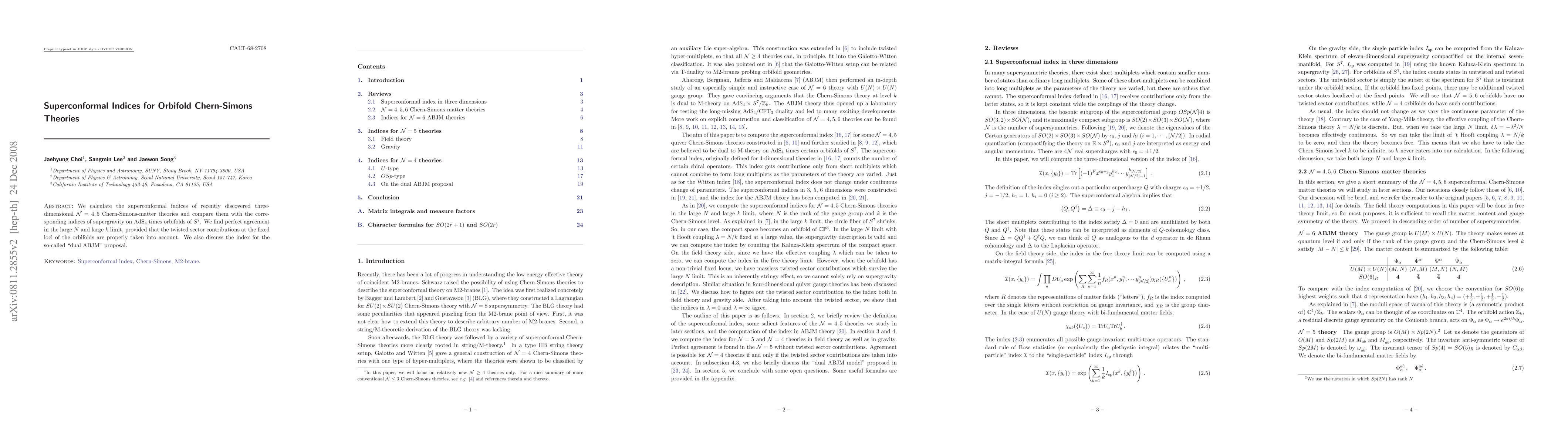 A combination of theoretical and computational methods were used to investigate the properties of N=6 superconformal Chern-Simons theories.