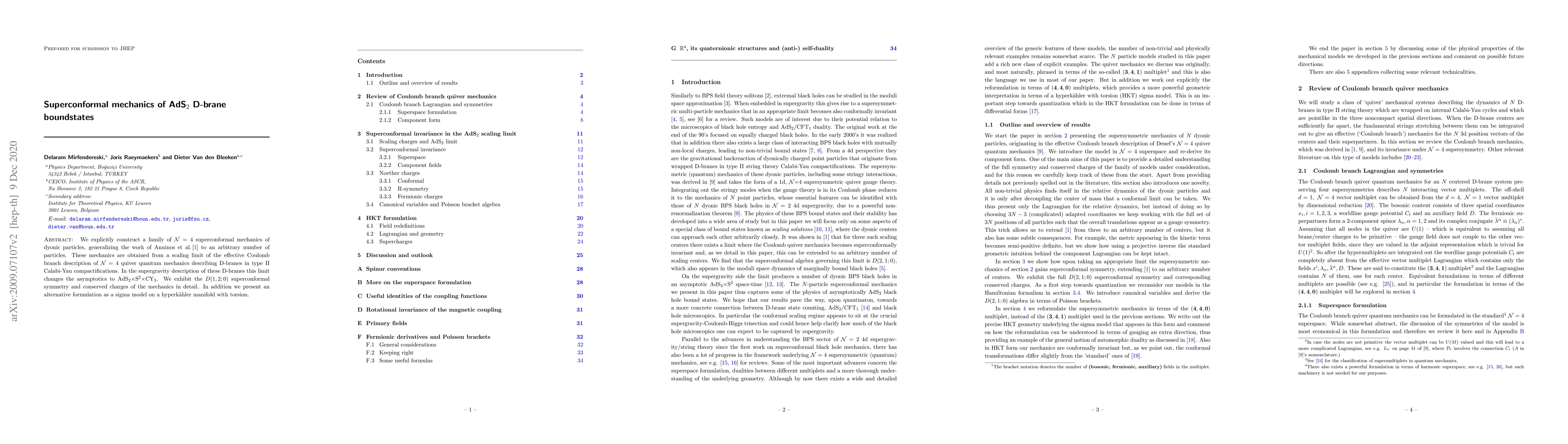 This paper constructs ${\cal N}=4$ superconformal mechanics for dyonic particle boundstates, extending previous work to multiple particles. It derives these mechanics from a scaling limit of ${\mathcal N}=4$ quiver quantum mechanics describing D-branes in Calabi-Yau compactifications, resulting in an AdS$_2$ asymptotic geometry. The study details the $D(1,2;0)$ superconformal symmetry and conserved charges, and presents an alternative sigma model formulation on a hyperkähler manifold with torsion.