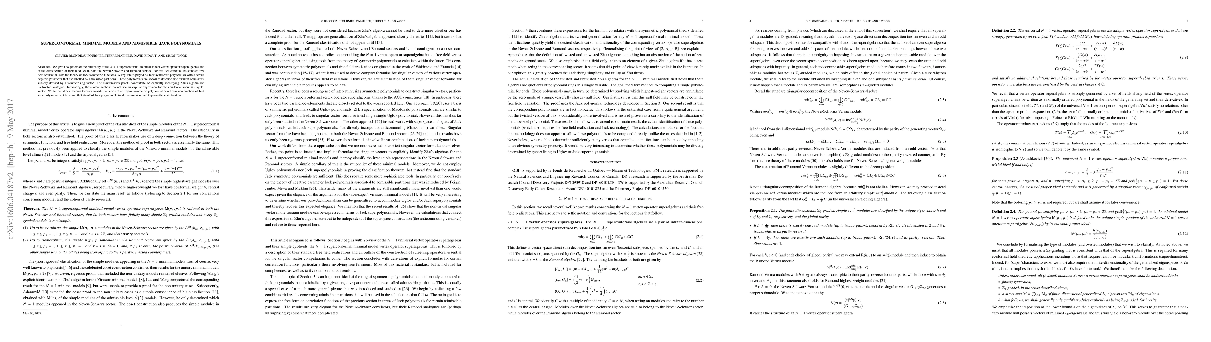 This paper provides new proofs for the rationality and module classification of N=1 superconformal minimal model vertex operator superalgebras using Jack symmetric polynomials labelled by admissible partitions, showing they describe dressed free fermion correlators. The proofs focus on identifying Zhu's algebra and its twisted version without requiring an explicit expression for the non-trivial vacuum singular vector.