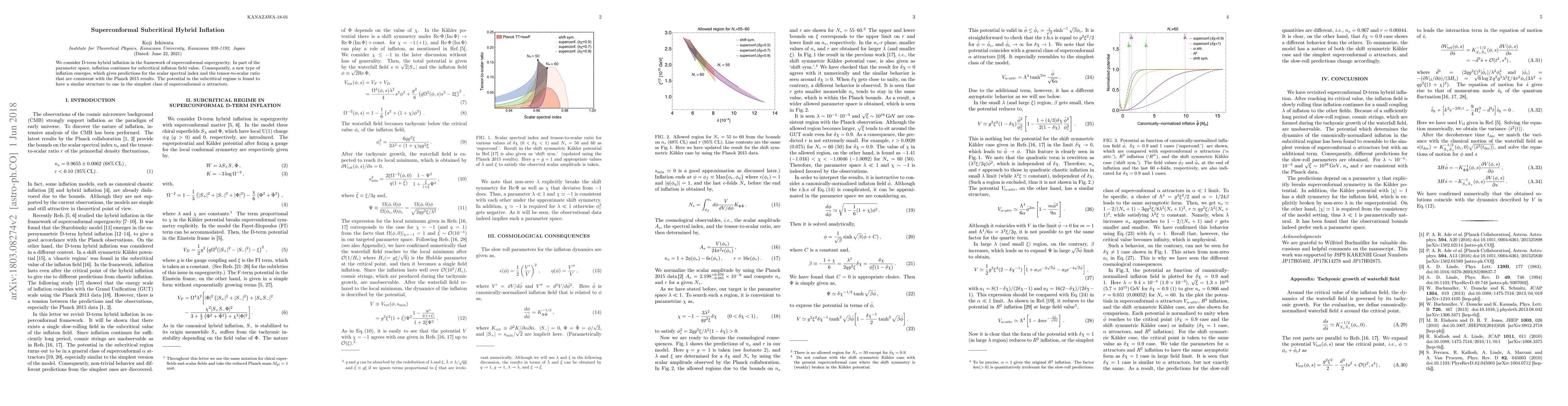 We consider D-term hybrid inflation in the framework of superconformal supergravity. In part of the parameter space, inflation continues for subcritical inflaton field value. Consequently, a new type of inflation emerges, which gives predictions for the scalar spectral index and the tensor-to-scalar ratio that are consistent with the Planck 2015 results. The potential in the subcritical regime is found to have a similar structure to one in the simplest class of superconformal alpha attractors.