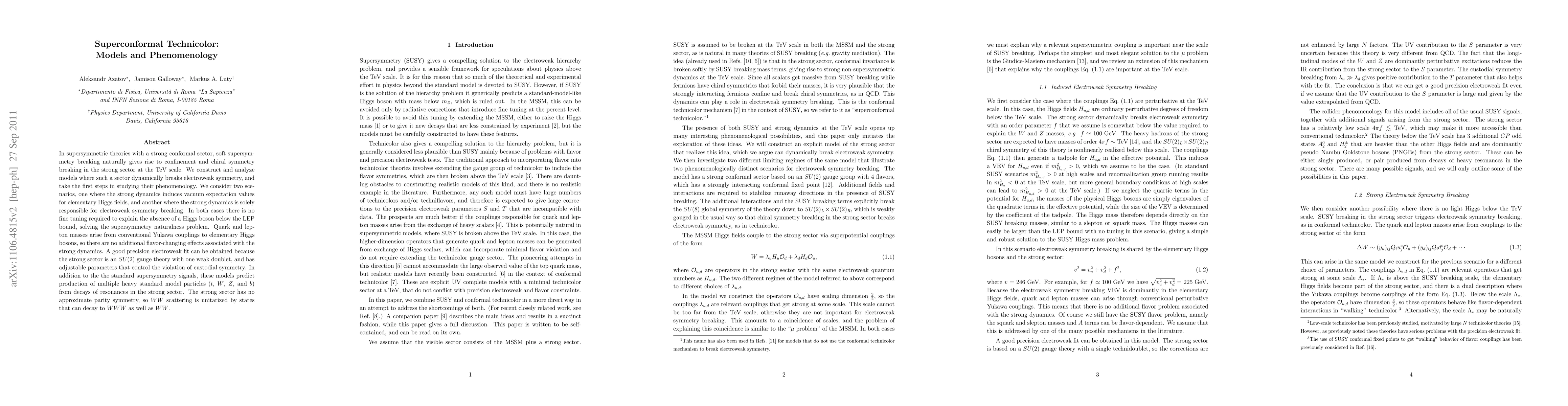 In supersymmetric theories with a strong conformal sector, soft supersymmetry breaking naturally gives rise to confinement and chiral symmetry breaking in the strong sector at the TeV scale. We construct and analyze models where such a sector dynamically breaks electroweak symmetry, and take the first steps in studying their phenomenology. We consider two scenarios, one where the strong dynamics induces vacuum expectation values for elementary Higgs fields, and another where the strong dynamics is solely responsible for electroweak symmetry breaking. In both cases there is no fine tuning required to explain the absence of a Higgs boson below the LEP bound, solving the supersymmetry naturalness problem. Quark and lepton masses arise from conventional Yukawa couplings to elementary Higgs bosons, so there are no additional flavor-changing effects associated with the strong dynamics. A good precision electroweak fit can be obtained because the strong sector is an SU(2) gauge theory with one weak doublet, and has adjustable parameters that control the violation of custodial symmetry. In addition to the the standard supersymmetry signals, these models predict production of multiple heavy standard model particles (t, W, Z, and b) from decays of resonances in the strong sector. The strong sector has no approximate parity symmetry, so WW scattering is unitarized by states that can decay to WWW as well as WW.