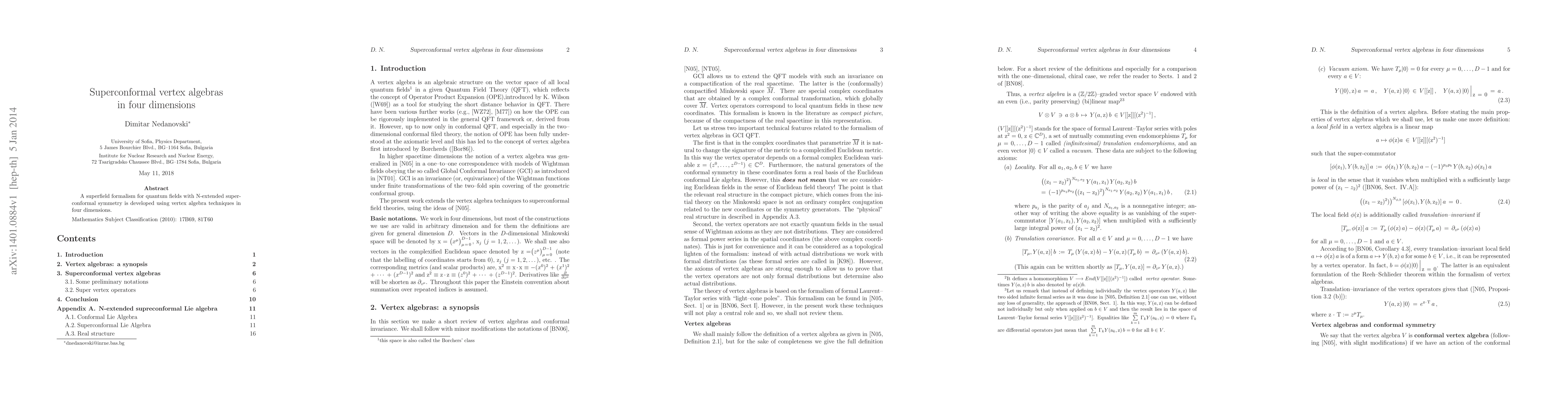 Summary: This paper develops a superfield formalism for quantum fields exhibiting N-extended superconformal symmetry in four dimensions, employing vertex algebra techniques to achieve the framework. The approach aims to provide a robust mathematical structure for studying superconformal quantum field theories.