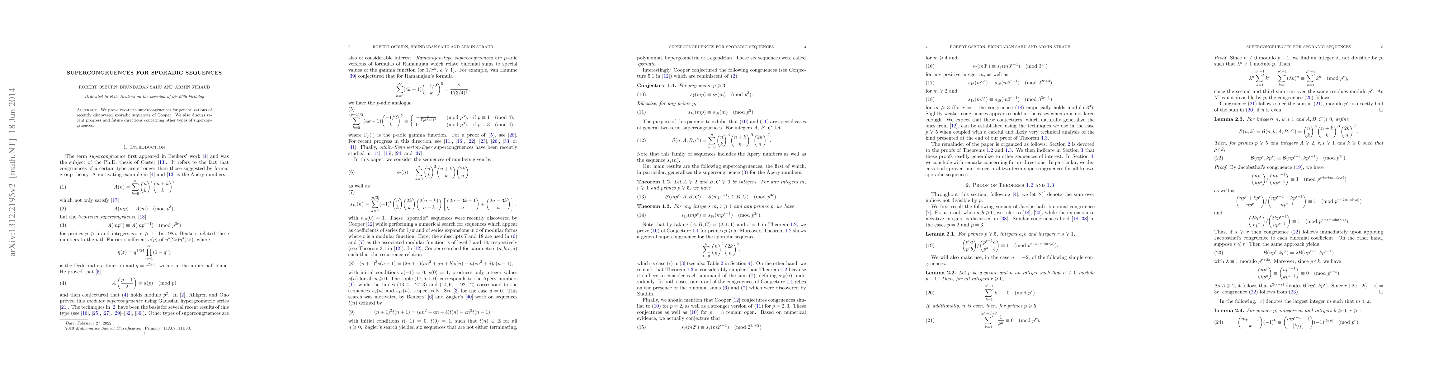 We prove two-term supercongruences for generalizations of recently discovered sporadic sequences of Cooper. We also discuss recent progress and future directions concerning other types of supercongruences.