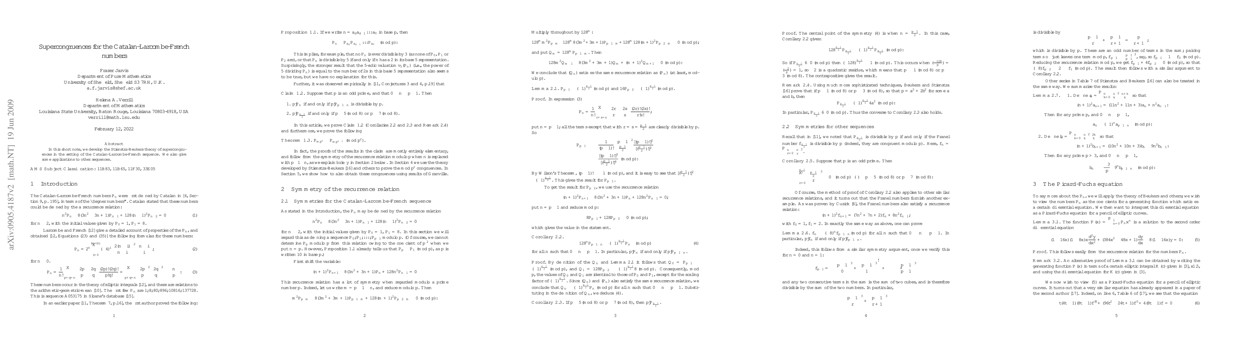 Summary: This paper extends the Stienstra-Beukers theory of supercongruences to the Catalan-Larcombe-French sequence, providing new insights and applications to related numerical sequences.