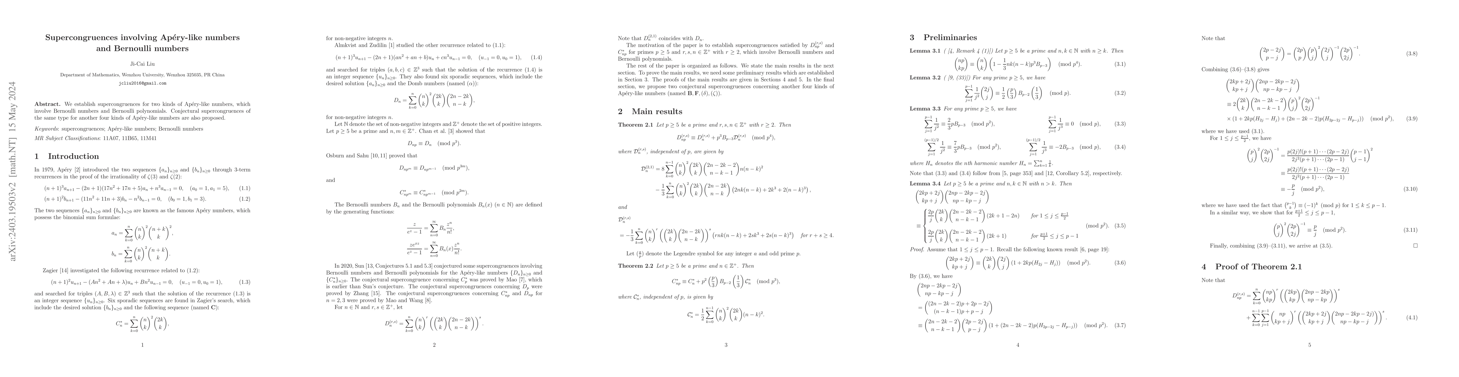 This paper establishes supercongruences for two types of Apéry-like numbers connected to Bernoulli numbers and polynomials, and proposes conjectures for similar supercongruences for four additional types.