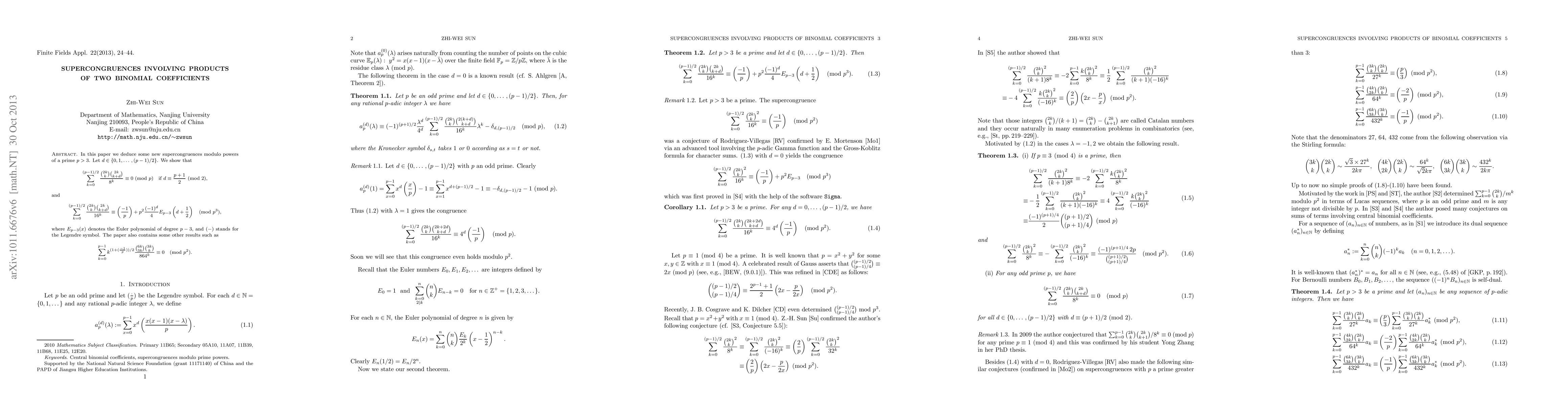 The research establishes new supercongruence relations involving products of binomial coefficients, providing a novel contribution to the field.