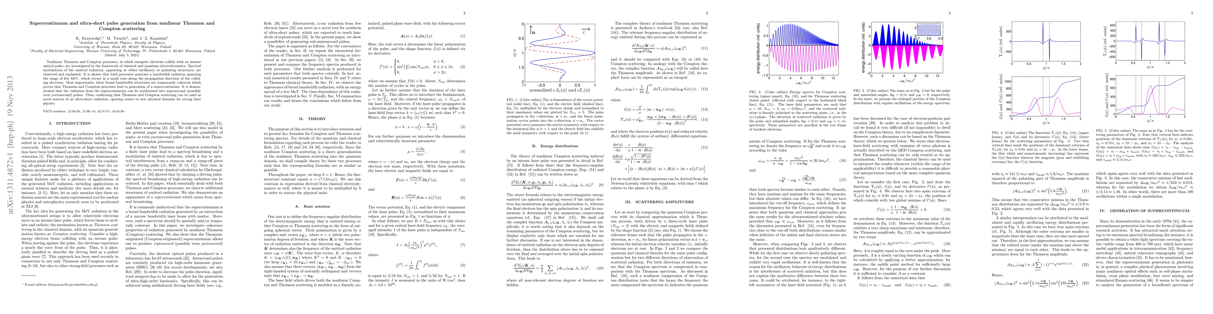 Nonlinear Thomson and Compton processes, in which energetic electrons collide with an intense optical pulse, are investigated in the framework of classical and quantum electrodynamics. Spectral modulations of the emitted radiation, appearing as either oscillatory or pulsating structures, are observed and explained. It is shown that both processes generate a bandwidth radiation spanning the range of few MeV, which occurs in a small cone along the propagation direction of the colliding electrons. Most importantly, these broad bandwidth structures are temporarily coherent which proves that Thomson and Compton processes lead to generation of a supercontinuum. It is demonstrated that the radiation from the supercontinuum can be synthesized into zeptosecond (possibly even yoctosecond) pulses. Thus, confirming that Thomson and Compton scattering can be used as novel sources of an ultra-short radiation, opening routes to new physical domains for strong laser physics.