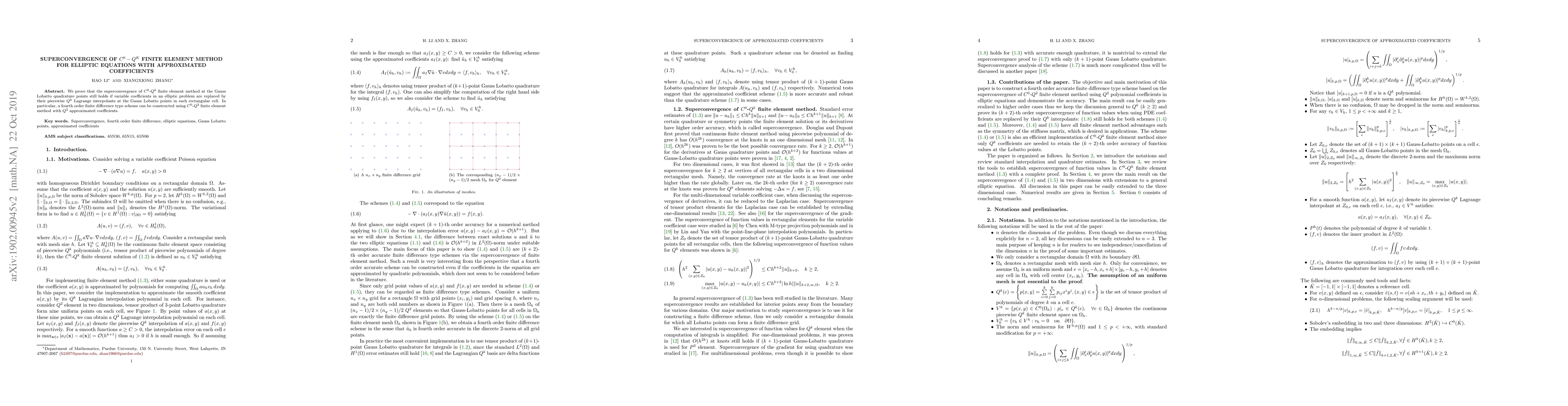 This paper demonstrates that the $C^0$-$Q^k$ finite element method maintains superconvergence at Gauss Lobatto points even when elliptic equation coefficients are approximated by piecewise $Q^k$ Lagrange interpolants. A fourth-order scheme is shown to be feasible using $C^0$-$Q^2$ elements with $Q^2$ coefficient approximations.