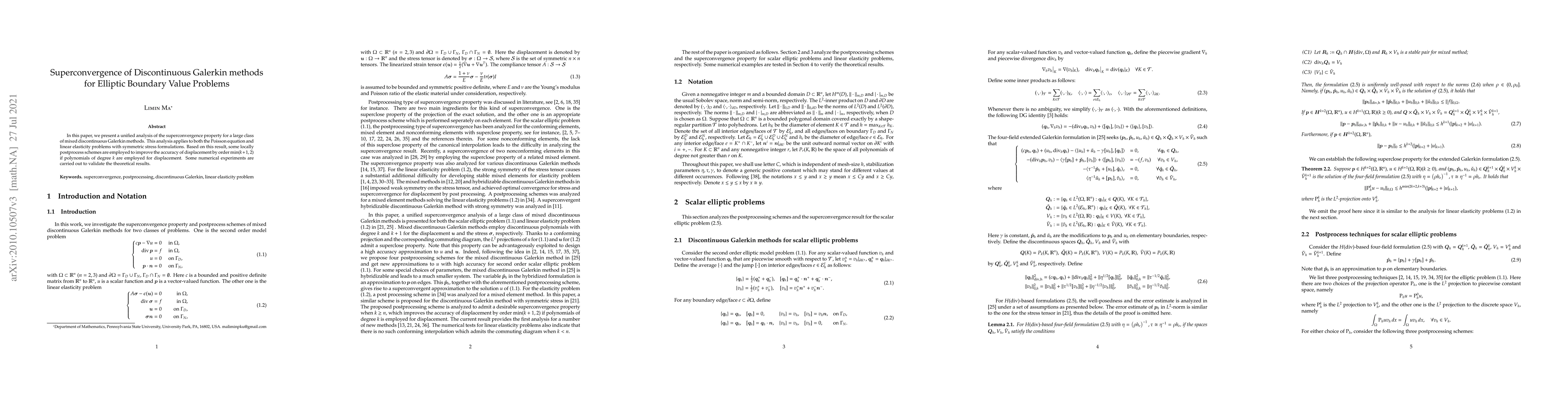 The paper presents a unified analysis of superconvergence for mixed Discontinuous Galerkin (DG) methods applied to elliptic boundary value problems, specifically the Poisson equation and linear elasticity with symmetric stress formulations.