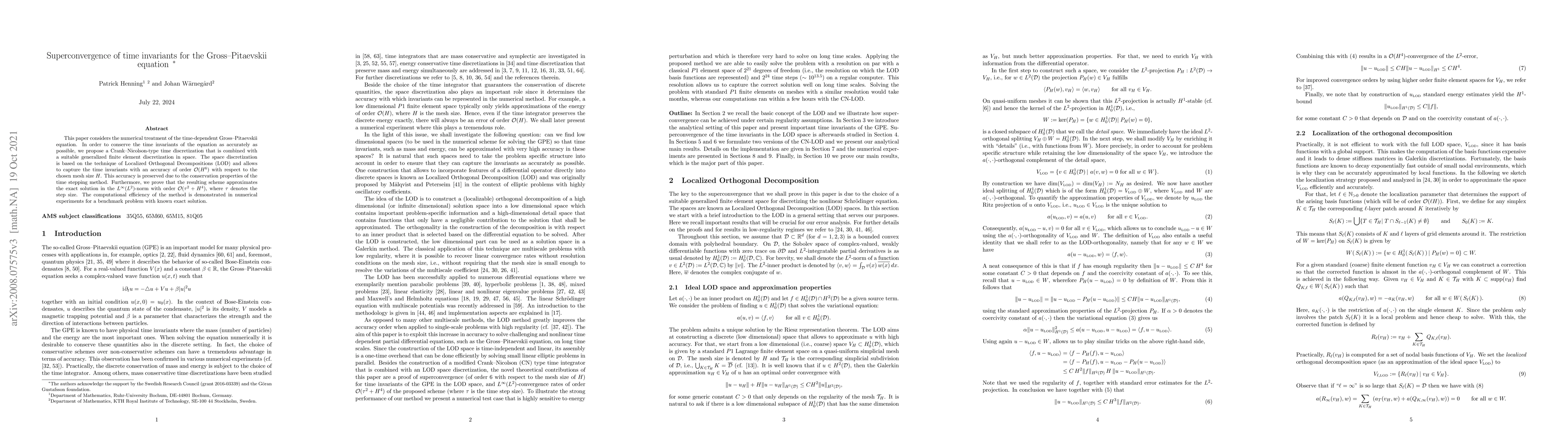 This paper considers the numerical treatment of the time-dependent Gross-Pitaevskii equation. In order to conserve the time invariants of the equation as accurately as possible, we propose a Crank-Nicolson-type time discretization that is combined with a suitable generalized finite element discretization in space. The space discretization is based on the technique of Localized Orthogonal Decompositions (LOD) and allows to capture the time invariants with an accuracy of order $\mathcal{O}(H^6)$ with respect to the chosen mesh size $H$. This accuracy is preserved due to the conservation properties of the time stepping method. Furthermore, we prove that the resulting scheme approximates the exact solution in the $L^{\infty}(L^2)$-norm with order $\mathcal{O}(\tau^2 + H^4)$, where $\tau$ denotes the step size. The computational efficiency of the method is demonstrated in numerical experiments for a benchmark problem with known exact solution.