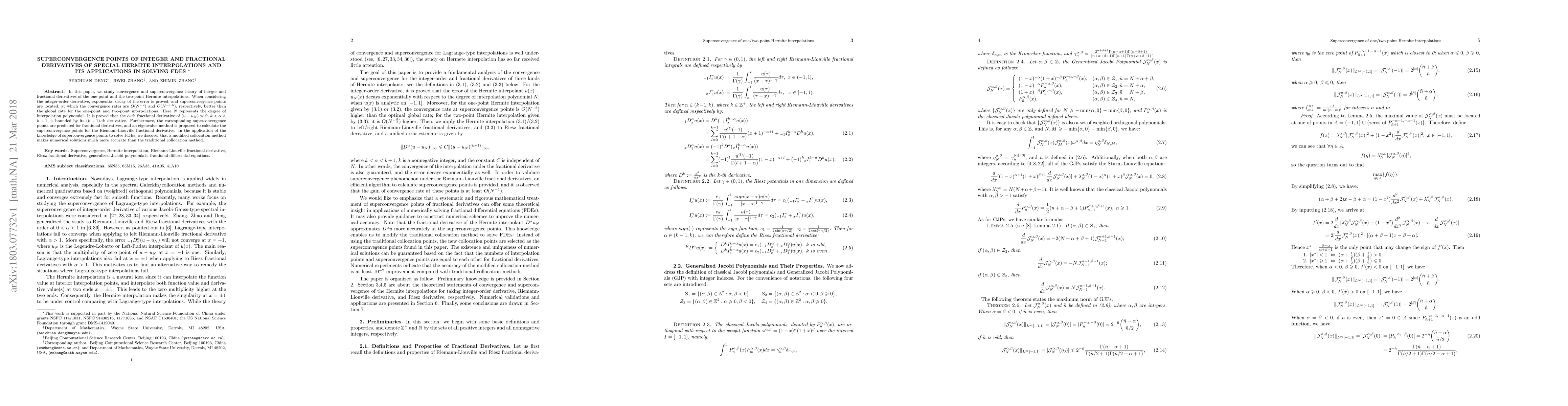 This paper explores convergence theory for Hermite interpolations with integer and fractional derivatives, finding superconvergence points that significantly improve accuracy in solving Fractional Differential Equations (FDEs) through a modified collocation method.