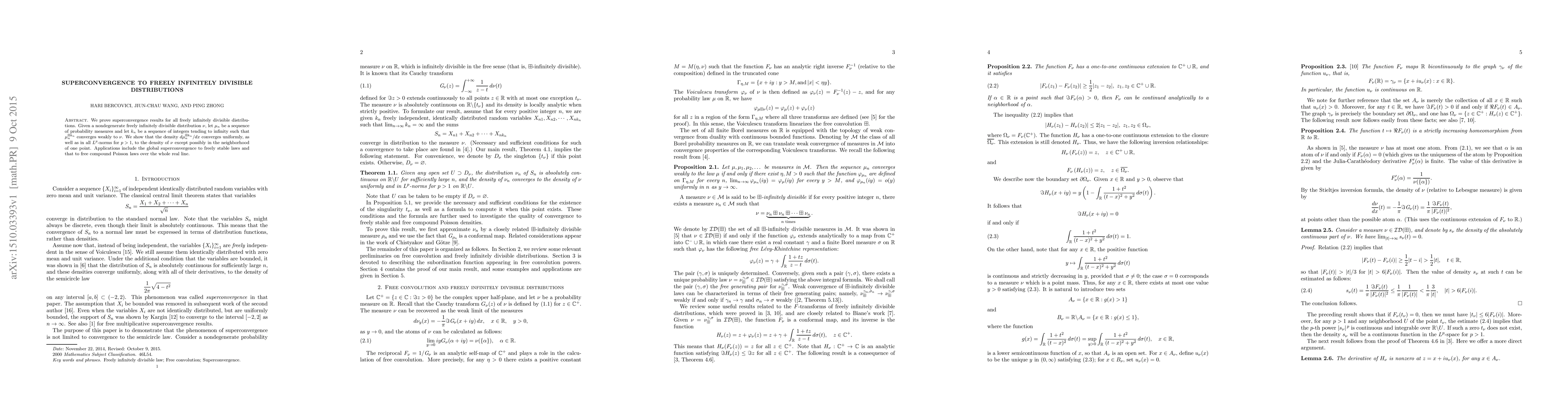 This paper proves superconvergence for freely infinitely divisible distributions, showing that the sum of free identically distributed random variables converges to a Lebesgue absolutely continuous distribution with a continuous density, which can be uniformly approximated by the limit law's density in $L^{p}$-norms for $p>1$. Applications include superconvergence to stable and free compound Poisson laws.