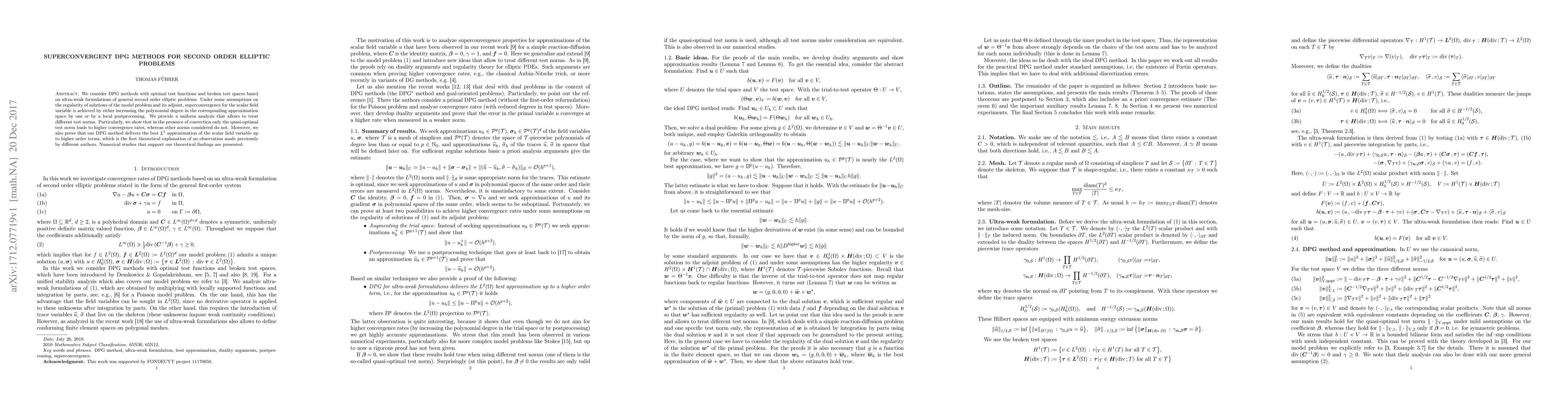 This research paper develops a method for solving second-order elliptic problems using Delayed Polynomial Approximation (DPG) methods with optimal test functions, achieving superconvergence and superior $L^2$ approximation. The study reveals that quasi-optimal test norms lead to higher convergence rates in the presence of convection.