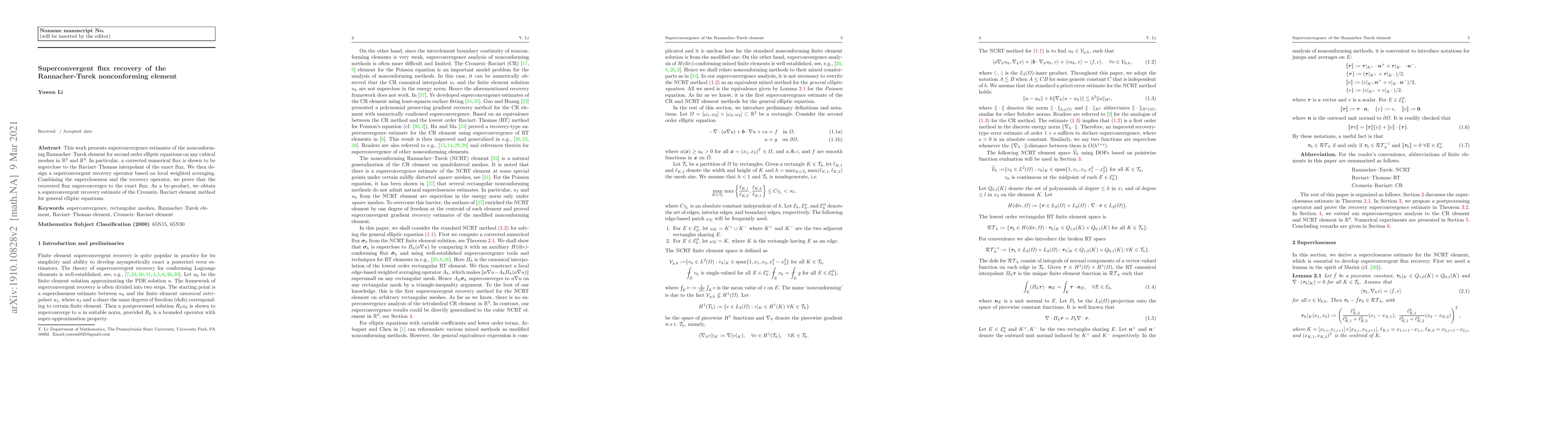 This paper investigates superconvergence properties of the Rannacher-Turek nonconforming element for second-order elliptic equations, demonstrating that a corrected numerical flux is superclose to the Raviart-Thomas interpolant of the exact flux. The authors develop a superconvergent recovery operator, proving that the recovered flux converges superclosely to the exact flux.