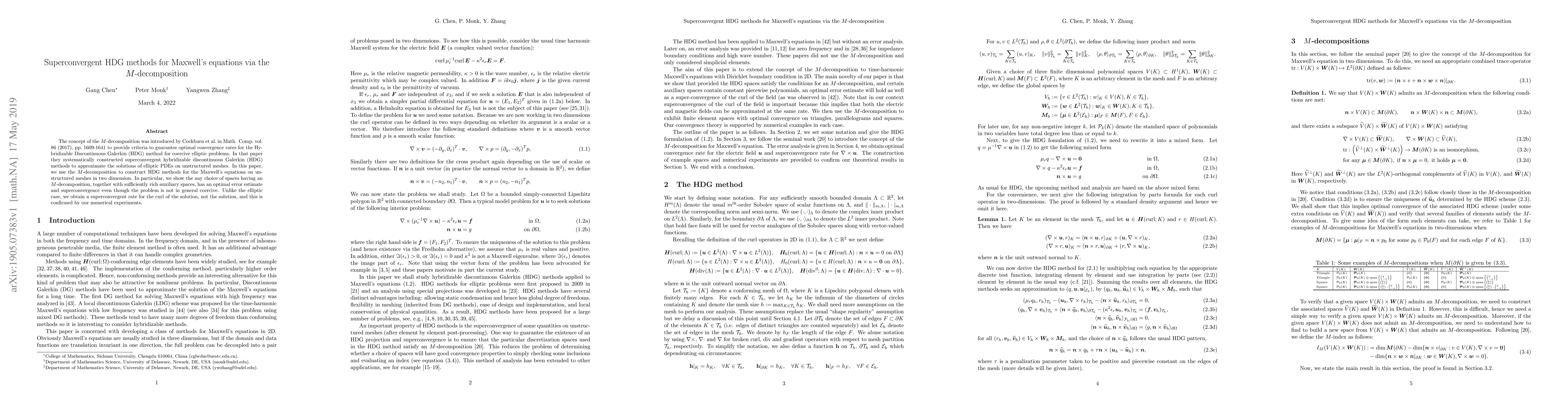 The concept of the $M$-decomposition was introduced by Cockburn et al.\ in Math. Comp.\ vol.\ 86 (2017), pp.\ 1609-1641 {to provide criteria to guarantee optimal convergence rates for the Hybridizable Discontinuous Galerkin (HDG) method for coercive elliptic problems}. In that paper they systematically constructed superconvergent hybridizable discontinuous Galerkin (HDG) methods to approximate the solutions of elliptic PDEs on unstructured meshes. In this paper, we use the $M$-decomposition to construct HDG methods for the Maxwell's equations on unstructured meshes in two dimension. In particular, we show the any choice of spaces having an $M$-decomposition, together with sufficiently rich auxiliary spaces, has an optimal error estimate and superconvergence even though the problem is not in general coercive. Unlike the elliptic case, we obtain a superconvergent rate for the curl of the solution, not the solution, and this is confirmed by our numerical experiments.